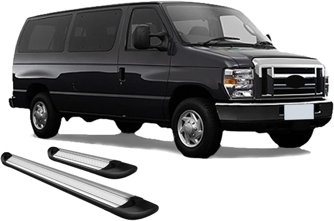 Black Horse Transporter Running Boards Silver Compatible with 02-14 Ford E-150|07-08 E-150 Econoline|99-05 E-150/E-350 Econoline CW|03-14 E-250|02-05 E-350 CW|99-00 E-350 Econoline-TR-F53596S
