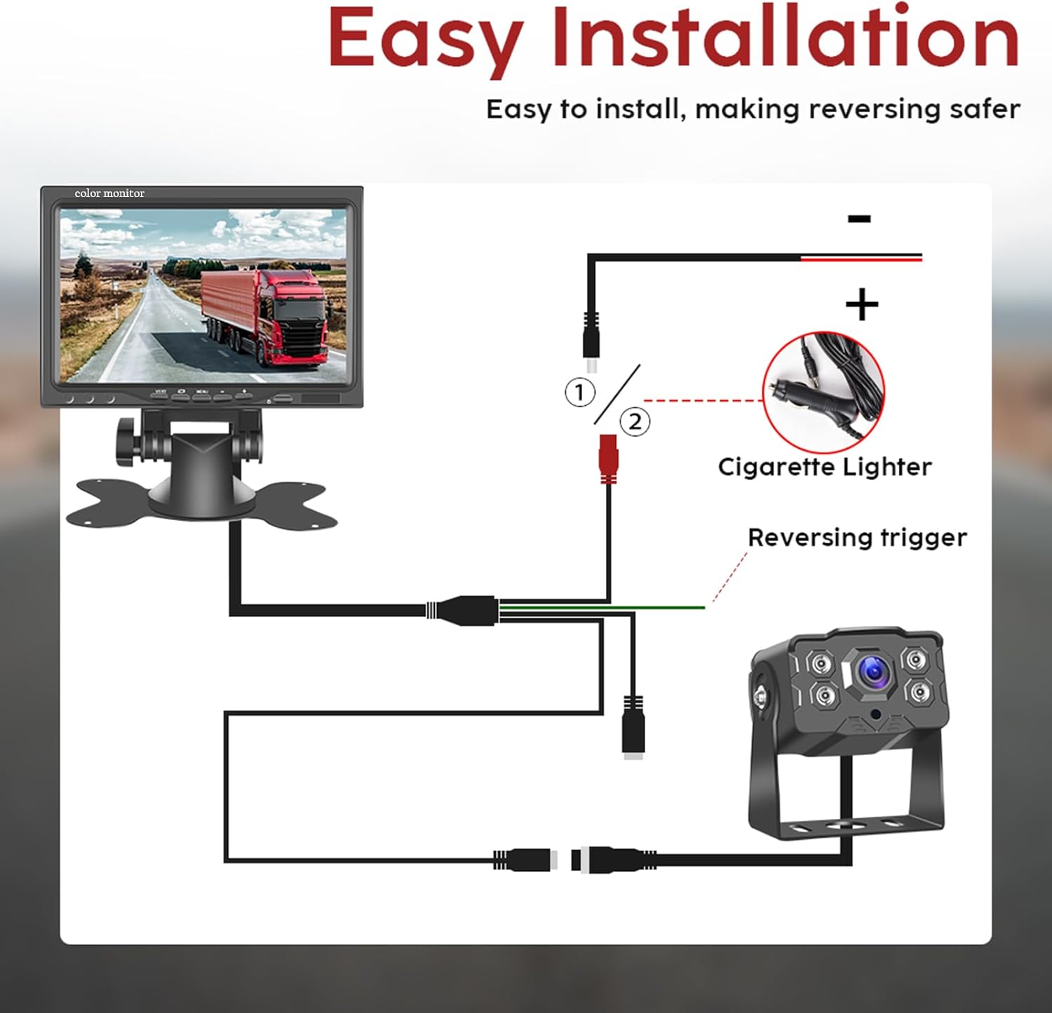 Backup Camera for Truck 7 Inch Monitor Rear View Camera for Truck/Car/Pickup/SUV/ IP66 Waterproof