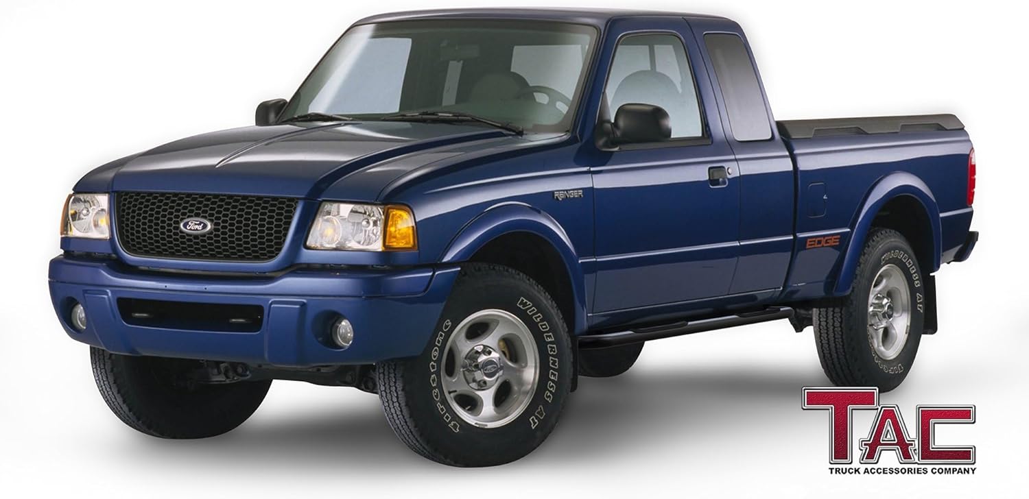 TAC Side Steps Compatible with 1999-2011 Ford Ranger/Ranger Edge/Mazda B Series Super Cab 4 Door 3 inches Black Nerf Bars Step Rails Running Boards Rock Panel Off Road Exterior Accessories (2 PCS)