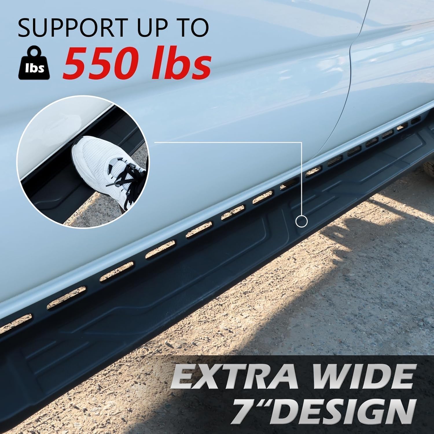 • Design: Allowing for easy movements such as stepping in, stepping out and each side can support up to 600 lbs. Special non-slip tread and bottom groove design provides a secure foothold which you can step into your truck easily.