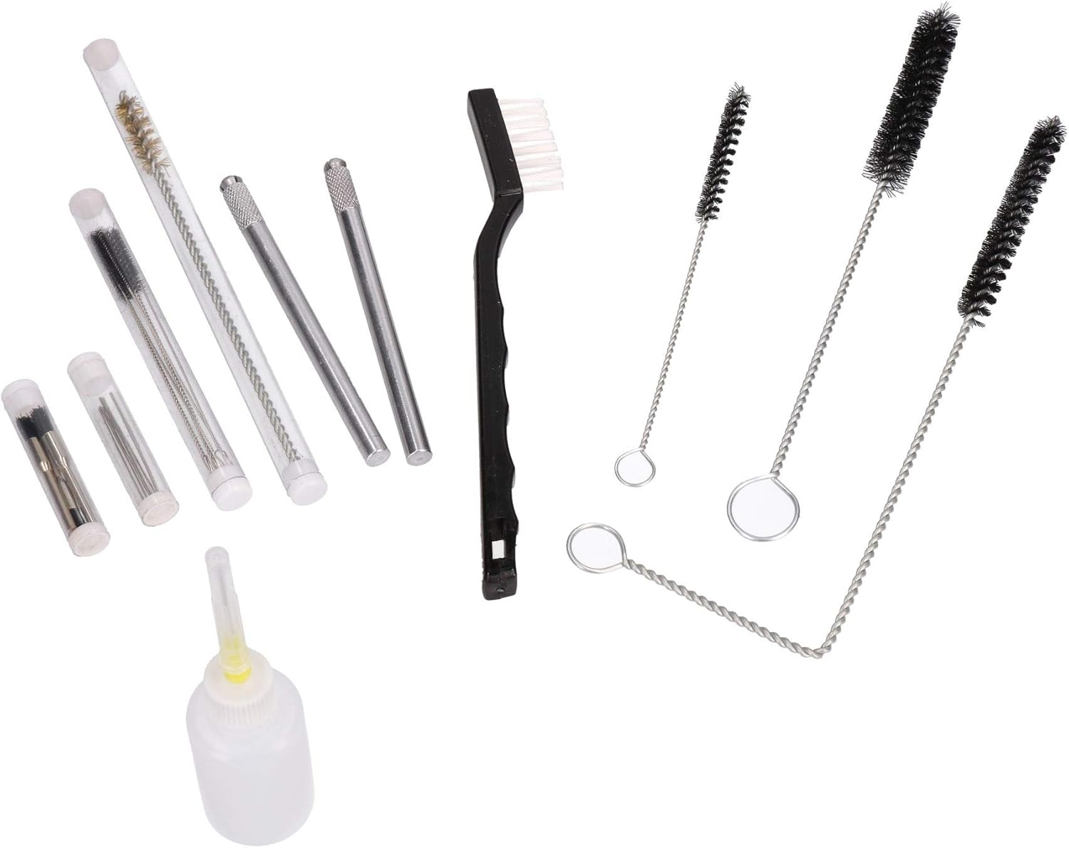 Professional air spray gun cleaning kit for commercial or occasional use Air spray gun cleaning kit Suitable for all cleaning requirements when it comes to spray guns and air brushes The brushes are suitable for all types of paint thinner Suitable for all types of spray guns such as suction, gravity feed, HVLP, detail, pressure as well as air brushesSET INCLUDES THE FOLLOWING 1 x Long Handle angle wire brush 1 x long handle straight wire brush 1 x medium sized brush 1 x brass brush 5 x fine brushes 2 x hobby knife holders 6 x fine points 1 x plastic handle tooth brush 3 x detail brushes 1 x bottle of cleaning solution 1 x compartmentalized storage tray