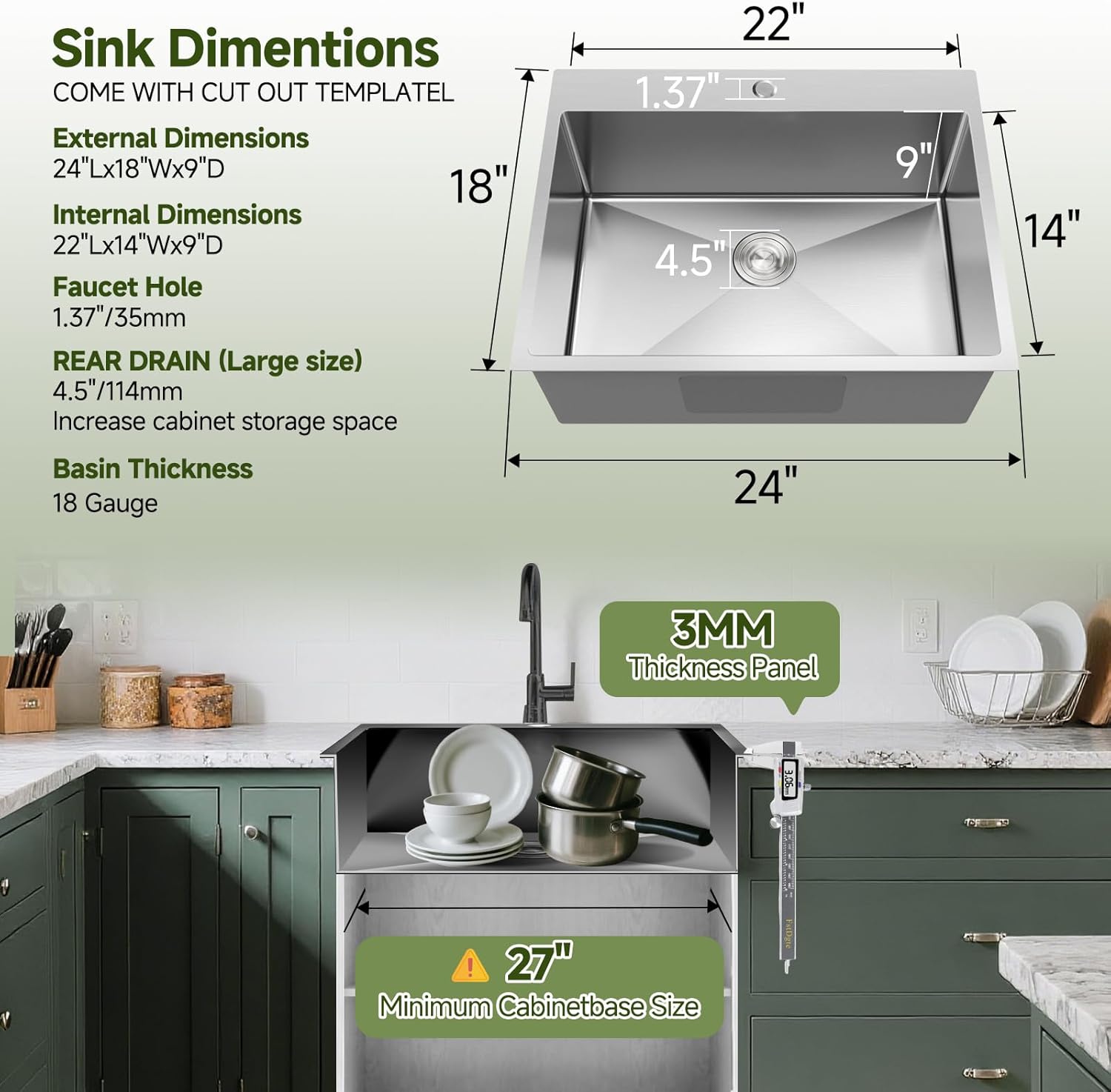 | Model Number | Zyreoney Drop in Kitchen Sink |