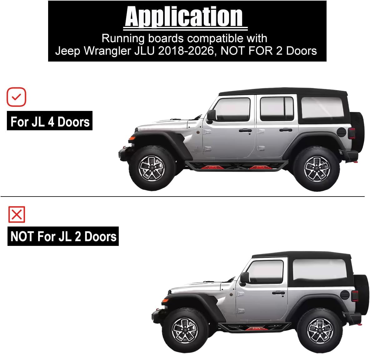 | Compatible with Vehicle Type | Jeep Wrangler JL 4XE 4 Doors 2021-2026, Jeep wrangler jlu unlimited rubicon,jl unlimited sahara, jl unlimited sahara Altitude, jl unlimited sport, jl unlimited sport altitude, jl unlimited sport s, jl unlimited willys, jl unlimited willys Sport 2018-2020, Jeep wrangler jlu unlimited rubicon,jl unlimited sahara, jl unlimited sahara Altitude, jl unlimited sport, jl unlimited sport altitude, jl unlimited sport s, jl unlimited willys, jl unlimited willys Sport 2021, Jeep wrangler jlu unlimited rubicon,jl unlimited sahara, jl unlimited sahara Altitude, jl unlimited sport, jl unlimited sport altitude, jl unlimited sport s, jl unlimited willys, jl unlimited willys Sport 2022, Jeep wrangler jlu unlimited rubicon,jl unlimited sahara, jl unlimited sahara Altitude, jl unlimited sport, jl unlimited sport altitude, jl unlimited sport s, jl unlimited willys, jl unlimited willys Sport 2023, Jeep wrangler jlu unlimited rubicon,jl unlimited sahara, jl unlimited sahara Altitude, jl unlimited sport, jl unlimited sport altitude, jl unlimited sport s, jl unlimited willys, jl unlimited willys Sport 2024, Jeep wrangler jlu unlimited rubicon,jl unlimited sahara, jl unlimited sahara Altitude, jl unlimited sport, jl unlimited sport altitude, jl unlimited sport s, jl unlimited willys, jl unlimited willys Sport 2025-2026 |