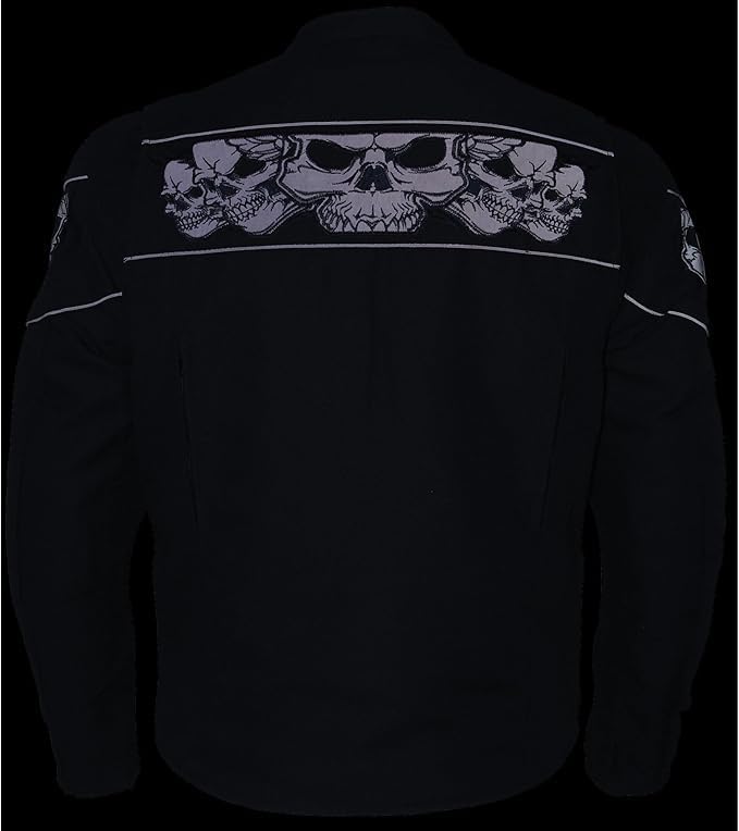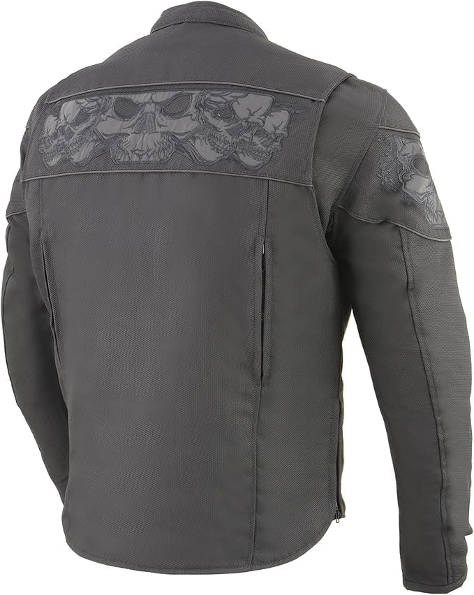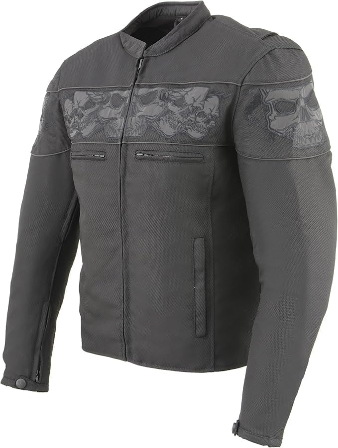 Men's Nylon Textile Scooter Jacket w/ Reflective Skulls and Gun Pockets