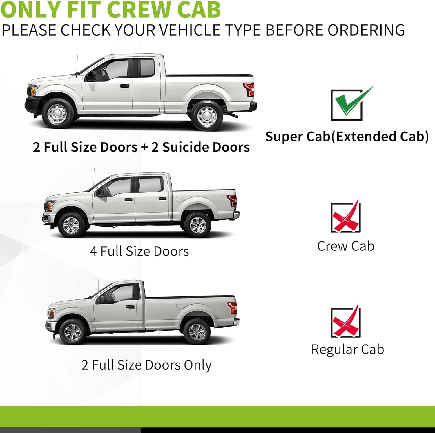 | Compatible with Vehicle Type | Compatible with 2015-2026 Ford F-150 SuperCab, 2017-2026 Ford F250 F350 SuperCab |