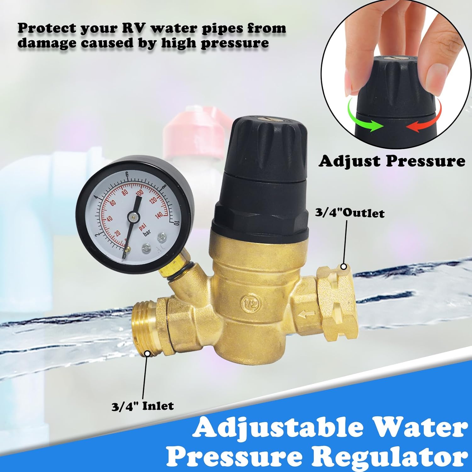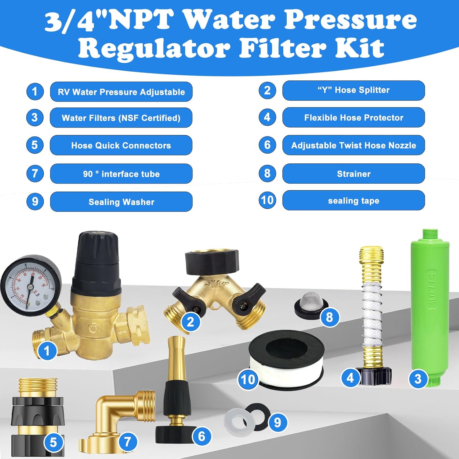 | Included Components | 1 *RV water filter; 1* flexible hose protector; 1*RV water pressure regulator |