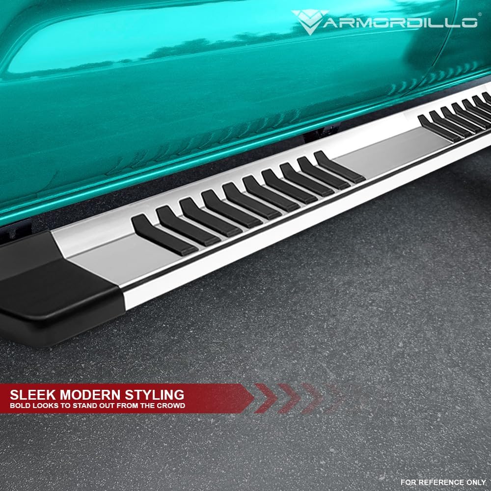 Upgrade Your Vehicle With Armordillo OE-Style Aluminum Running Boards, Designed To Combine Functionality, Durability, And Style. Featuring A Sleek Polymer Stripes Pattern, These Running Boards Offer A Refined, Factory-Like Appearance While Ensuring A Secure Grip. The Rectangular Design Provides A Solid 6-Inch-Wide Stepping Surface, Delivering Stability And Confidence When Entering Or Exiting Your Vehicle. Crafted From Lightweight Yet Durable Aluminum, These Running Boards Are Built To Withstand Daily Use And Harsh Conditions. The Fine Shimmering Flat Black Finish Enhances Your Vehicle’S Aesthetics While Offering Excellent Resistance To Wear And Corrosion. Designed For SUVs And Crossover Vehicles, These Running Boards Provide An Oem-Style Fit And Finish. Each Set Includes Vehicle-Specific Brackets For A Secure Installation, Though Minor Drilling May Be Required For Certain Applications. Upgrade Your Ride With Armordillo—Where Style Meets Performance.
