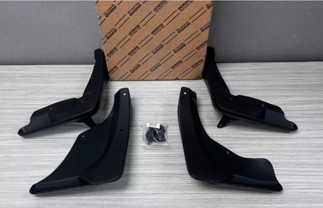 Upgrade your 2025-Toyota Camry Hybrid with these Genuine Mudguards/Mud Flaps - designed specifically for SE & XSE models. Protect your vehicle from mud, dirt, and other road debris while adding a sleek and stylish look to your ride. This 4 piece set is easy to install and is constructed of durable black material that will withstand the elements and keep your Camry looking sharp for years to come. These genuine Toyota accessories are designed to perfectly fit your 2025-Camry, providing maximum coverage and protection for your wheels. Whether youre tackling off-road adventures or simply cruising through city streets, these mud flaps will keep your vehicle looking clean and well-maintained. Dont let mud, rocks, or water damage your Camrys finish – invest in quality mudguards/mud flaps to keep it in top condition. In addition to offering crucial protection for your vehicle, these mud flaps also add a touch of style to your Camry. The sleek black design complements the look of the car while providing practical benefits. Say goodbye to constant cleaning and washing due to road debris – with these genuine Toyota accessories, you can keep your Camry looking pristine without sacrificing style or performance. Upgrade today and experience the difference with Genuine Toyota Mudguards/Mud Flaps!