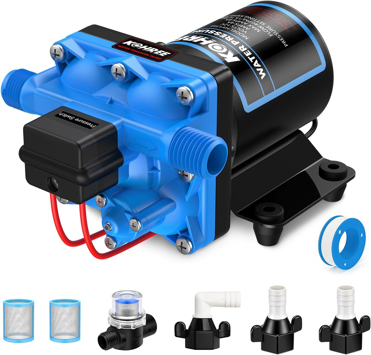 | Included Components | 12V RV water pump, 3 hose adapters, 2 strainers and teflon tape |