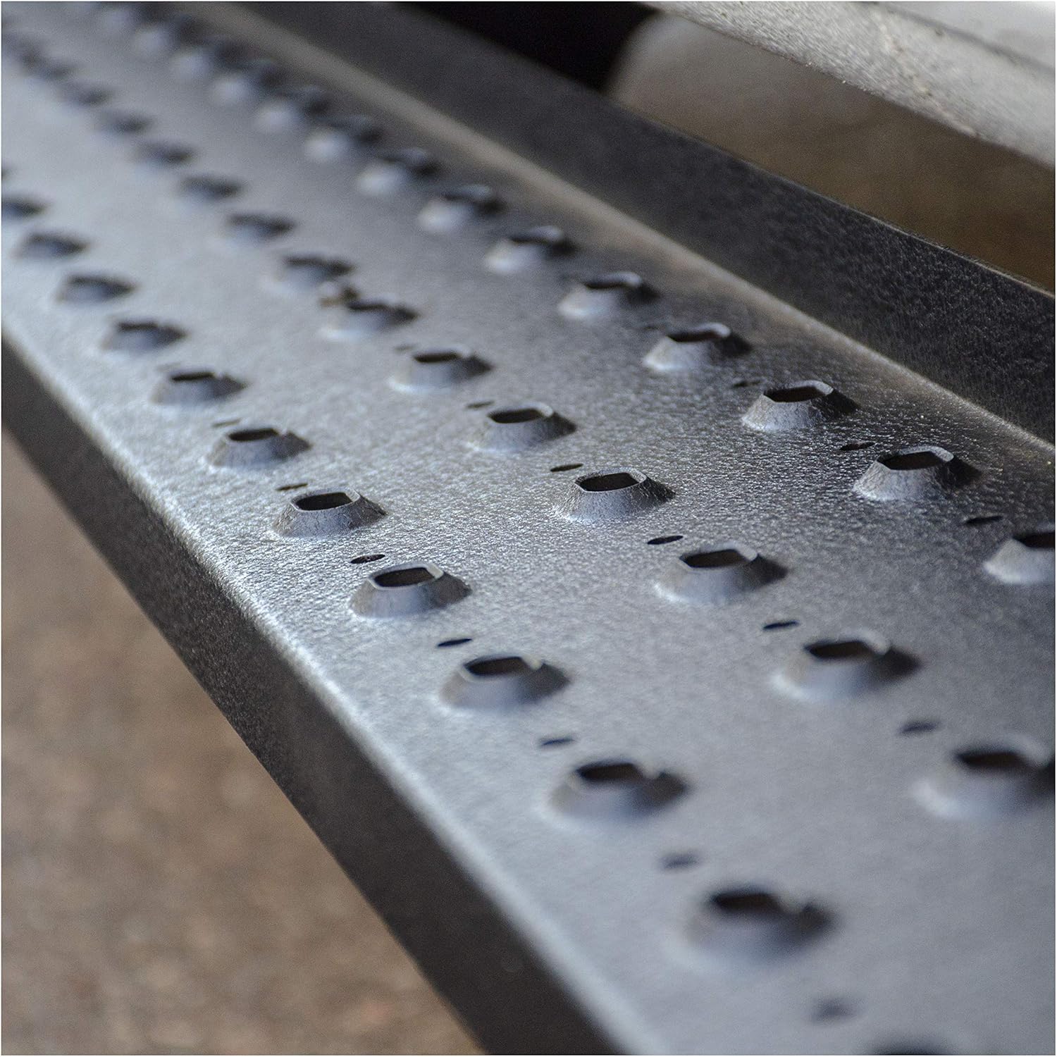 Powerful, definitive and uncompromising as a mountain ridge, ARIES RidgeStep running boards are made for the truck owner who gets it done, day after day. With their solid, all-steel construction, non-skid treads and tough powder coat finish, RidgeStep running boards are made to finish the job. Installation of these running boards is easy and secure because they use the ARIES VersaTrac mounting system. The underside of each board is equipped with a channel that accepts a set of heavy-duty bracket inserts. The inserts move along the channel to fit your vehicle, and the mounting hardware provides a secure attachment. The boards are made in four base lengths, including 53", 75", 85" and 91", and they are designed for vehicle-specific application (NOTE: VersaTrac mounting brackets are sold separately; see the application information to determine which brackets and boards fit your vehicle). ARIES RidgeStep running boards are not only made for easier installation, but they are also built to face the harsh elements of the commercial job. They feature high-strength, solid steel construction for a step that can keep up with those steel-toe boots, and they are completely without plastic parts, meaning they will not crack or fade over time. Their stamped, all-steel tread offers a 6-1/2" wide, non-skid surface that will never wear down no matter how many times you climb in and out of your truck. The end caps are also made from steel and are welded to contour to the body of your vehicle for a professional finish. RidgeStep running boards come with a unique E-coat and textured black powder coat finish to not only withstand rust but also to hide minor scratches and grime. From the cattle ranch of the arid desert plains to the forgotten forest trails of the frozen tundra, the job doesn't wait for those who lag behind. Rise to the challenge and master the job with ARIES RidgeStep running boards.