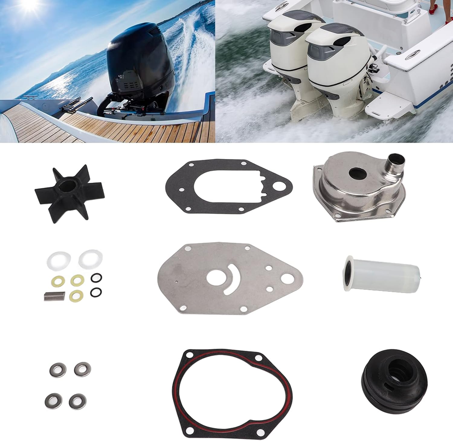 How to Use: Used for repairing or rebuilding the impeller of outboard motor pump. Specification: Item Type: Water Pump Impeller Repair Kit Material: Stainless steel + rubber OEM: 46-812966A12 Accessory Type: Direct replacement Impeller Height: Approx. 2.54cm/ 1in Impeller Diameter: Approx. 7.94cm/ 3 1/8in Application: Used for repairing or rebuilding the impeller of outboard motor pump Fitmentide higher flow rates and cooling flow to protect your engine.5. COMPLETE PARTS: Whole water pump rebuild kit includes impeller, housing gasket, housing, plate, O‑ring etc. They are durable and steady, to save you lots of time on maintaining your cooling system.How to Use:Used for repairing or rebuilding the impeller of outboard motor pump.Specification:Item Type: Water Pump Impeller Repair KitMaterial: Stainless steel + rubberOEM: 46-812966A12Accessory Type: Direct replacementImpeller Height: Approx. 2.54cm/ 1inImpeller Diameter: Approx. 7.94cm/ 3 1/8inApplication: Used for repairing or rebuilding the impeller of outboard motor pumpFitment: Replacement for Mariner 1991 and newer 30, 40, 50, 60 EFI and Carbureted Models 4-StrokeReplacement for Chrysler OutboardsReplacement for Force OutboardsReplacement for Marine70 FORCE Outboards 1991-1995Replacement for Serial 0E000001 THRU 0E13859975 FORCE 1996-1998Replacement for Serial 0E288000 THRU 0E344999 0E138600 THRU 0E202999 0E203000 THRU 0E287999 Package List:19 xWater Pump Repair ToolNote:1. Please double check the part number of your item, matching information is for reference only.2. If you are unsure of the item, please contact us before buying to avoid unnecessary return, thanks!
