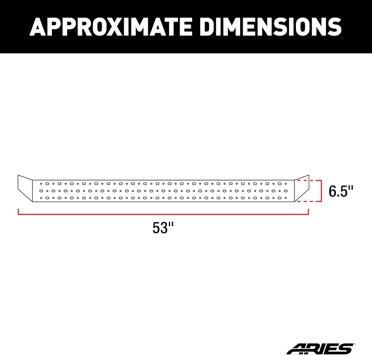 Powerful, definitive and uncompromising as a mountain ridge, ARIES RidgeStep running boards are made for those who gets it done, day after day. With their solid, all-steel construction, non-skid treads and tough powder coat finish, RidgeStep running boards are made to finish the job. Installation of these running boards is easy and secure because they use the ARIES VersaTrac mounting system. The underside of each board is equipped with a channel that accepts a set of heavy-duty bracket inserts. The inserts move along the channel to fit your truck, and the mounting hardware provides a secure attachment. These running boards are designed to fit specific years of the Ford F-150, F-250 Super Duty, F-350 Super Duty, F-450 Super Duty and F-550 Super Duty (NOTE: This set of running boards includes vehicle-specific VersaTrac mounting brackets. See the application information to verify compatibility with your vehicle). ARIES RidgeStep running boards are not only made for easier installation, but they are also built to face the harsh elements of the commercial job. They feature high-strength, solid steel construction for a step that can keep up with those steel-toe boots, and they are completely without plastic parts, meaning they will not crack or fade over time. Their stamped, all-steel tread offers a 6-1/2" wide, non-skid surface that will never wear down no matter how many times you climb in and out of your truck. The end caps are also made from steel and are welded to contour to the body of your truck for a professional finish. RidgeStep running boards come with a unique E-coat and textured black powder coat finish to not only withstand rust but also to hide minor scratches and grime.