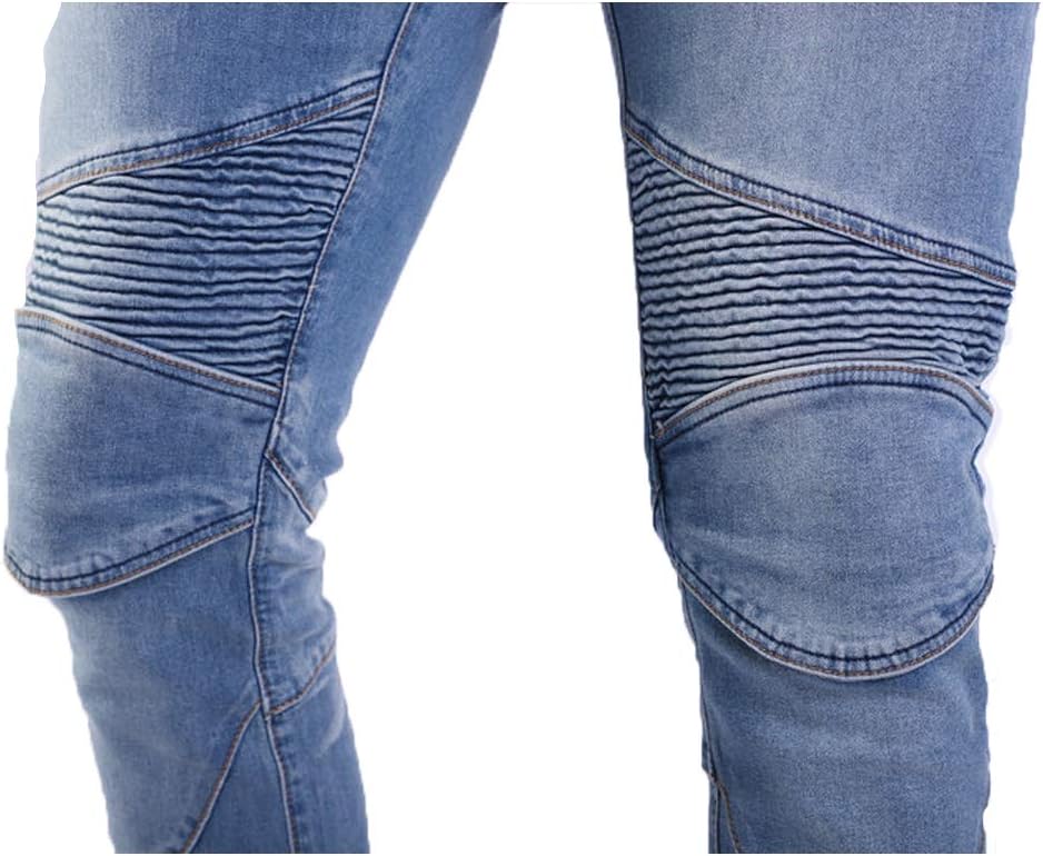 Material:12oz Stretch Denim Cloth,97% Cotton + 3% Spandex Color:Blue(as the picture show) - - Size:S=28,M=30,L=32,XL=34,2XL=36,3XL=38 - S=28:Waistline 76cm/29.9",Length 104cm/40.9",Thigh 54cm/21.2" - M=30:Waistline 80cm/31.5",Length 105cm/41.3",Thigh 56cm/22" - L=32:Waistline 82cm/32.2",Length 107cm/42.1",Thigh 58cm/22.8" - XL=34:Waistline 86cm/33.8",Length 108cm/42.5",Thigh 60cm/23.6" - XXL=36:Waistline 92cm/36.2",Length 109cm/42.9",Thigh 62cm/24.4" - XXXL=38:Waistline 104cm/41",Length 110cm/43.3",Thigh 64cm/25.2" - - - - - - Upgrade Knee Hip Pads:- - - - - - -- Knee Pads are 3 times thicker than ordinary protective gear,Hip Pads thickness is 1.5cm -- The Knee position is wrapped in a semicircle, which can better protect the knee in the case of a fall -- Soft rubber material, good anti-drop performance -- Suitable for riders who often ride motorcycles - Casual Style Suitable for Daily Life - With Knee Hip Protector Pads - Stretch Shirring Panel above the Knee & Waist-back for Better Movement - Easy Removable Knee Protector - Various Washing Process - Put CE standard software protector and together, and the protection performance is enriched - Prepare for the lady's size of the pattern for exclusive use of a woman directing a beautiful silhouette - Suit For :Motorcycle Riding,Biker,ICE, Hockey,Motocross Off Road etc. - Package Including: 1 x Motorcycle jean + 2 x Knee Protection Pads + 2 X Hip Pads - - - - Features:- - - - - - - Hard Wearing,Windproof,Breathable,Anti-tearing - - - Fashion Trends and Riding Safety Design,2 X Knee Pads and 2 X Hip Protect Pads,Perfect for Motorcycle and Daily - - - Armour:Free Removable Hip and Knee Protector provided for enhanced Protection