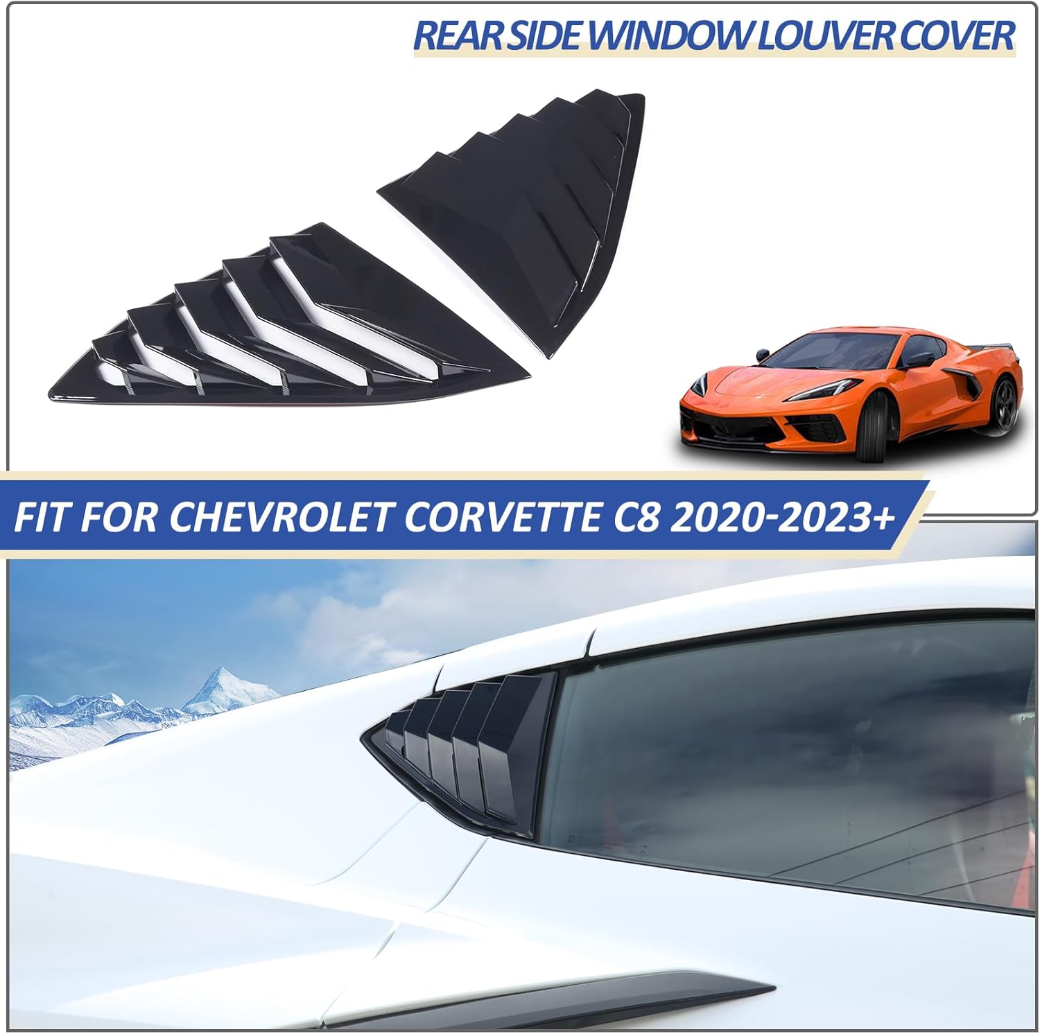 Daeiclru offers a wide range of car accessories to enhance and upgrade both the look and function of your vehicle . We sincerely appreciate your decision to purchase our products, we always committed to providing the high-quality, safe automotive decorative products and the excellent ,professional and customer service.📌Item Description:Fitment: Fit for Chevrolet Corvette C8 Stingray 2020-2023Condition: 100% Brand NewMaterial: High quality of ABS plastic✨Product Features:☑Rear side window louvers, makes your car cooler and trendier.☑Easy to installand use, no drilling/tools required, self-adhesive design, no damage to your car. No residue after take it off.📢Attention:Please check whether this item can fit on your car before purchasing.If you have any problems with our products, please feel free to contact us and we will reply within 24 hours. You can buy with no worry.💡Installation Method:Step1.Wipe the surface where you want to stick. Keep dry and clean .(Very important)Step2. Determine the installation location and then make comparison of the product and installation location. If the product doesn’t fit your vehicle, please contact us immediately and do not install.Step3.Remove the protective film from the Double-sided tape on the back of the product. For better results, it is recommended to heat the double-sided tape with a hairdryer or lighter.Step4.Paste the accessories in the corresponding position and press it with your hand to make it more solid.🎁Package Include:2pc/set of Car Rear Side Window Louver CoverDaeiclru have other interior and exterior accessories,please browse our store in detail.You will find more automotive accessories to your satisfaction,thank you!