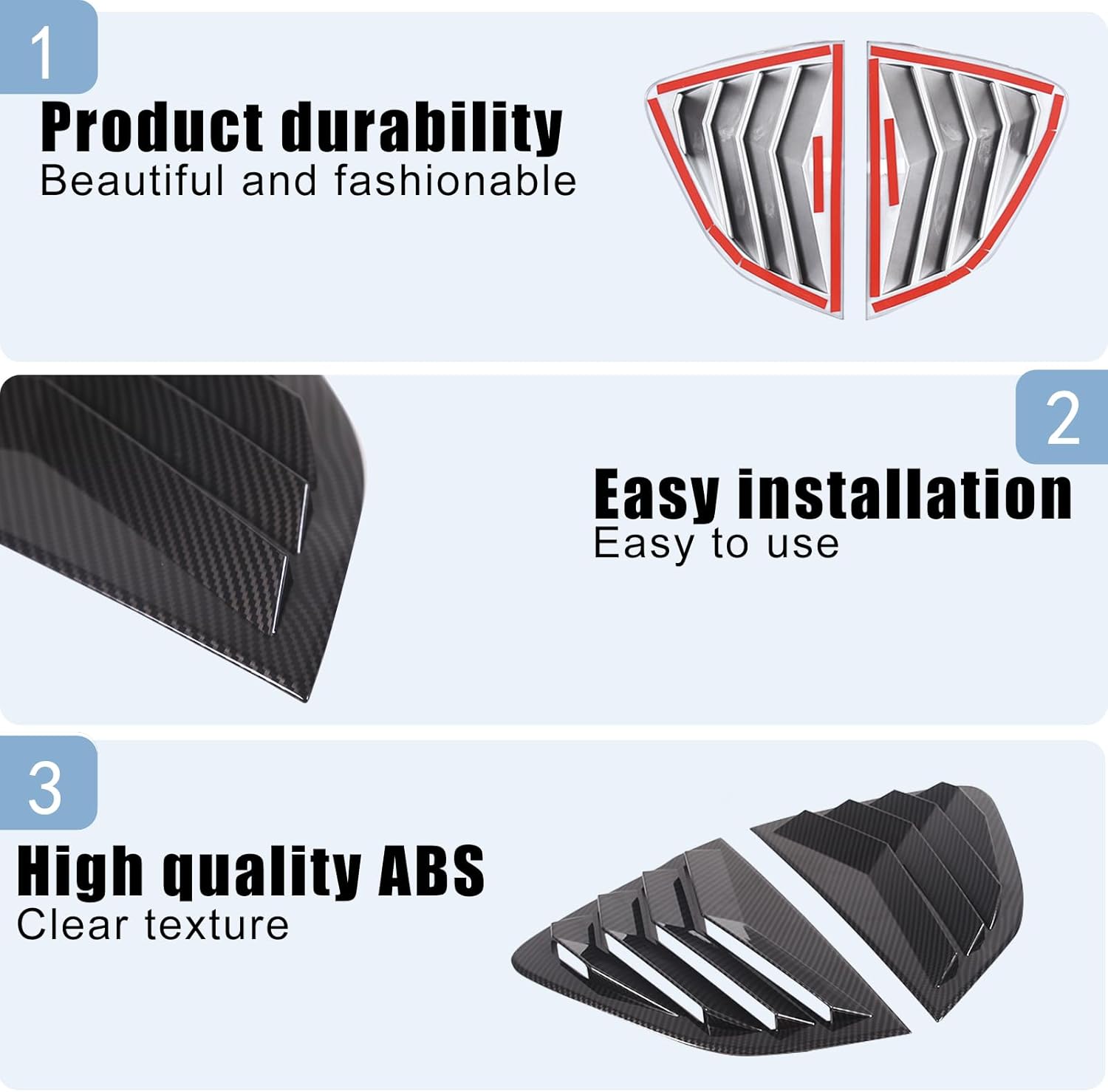 HAPPYHORSE: Offers a wide range of auto parts to enhance and upgrade the look and function of your vehicle. We sincerely appreciate your decision to purchase our products, we always strive to provide high quality, safe auto trim products and excellent, professional and client side servers. ๐ package includes: Car rear window shutter decorative frame ๐ Please check whether your model is the same as the product before purchasing the product, in case you buy the wrong product ๐ Product Specifications: 100% New High Quality Guarantee ๐ Product Features: Light weight, durable, scratch-resistant, beautiful appearance, decorative effect, and can cover existing scratches. Provide perfect decoration and protection for your car, giving your car a personalized appearance. ๐ Easy to install: Easy to install and use, no drilling/tools required, self-adhesive design, will not damage your car. No residue after disassembly. ๐ Item Description :: Auto Parts Compatible with Mazda MX-5 2016-2023 ๐ Material: Made of high-quality ABS ๐ Easy to use and affordable. Installation Method ๐: ๐ 1 3M tape on the back of the sticker. ๐ 2 Wipe the surroundings in advance and keep them dry and clean. ๐ 3 Installation can be done quickly and easily by tearing off the tape and pressing tightly. ๐ 4 If the weather is cold, use a hair dryer (hot air blowing) in order to provide optimal viscosity. 5 ๐ Please keep it dry for at least 72 hours after installation. Otherwise it will fall off easily ๐ If you need help or have questions about your order, please contact us. We hope you never need it, but if you do, our service will be friendly and simple