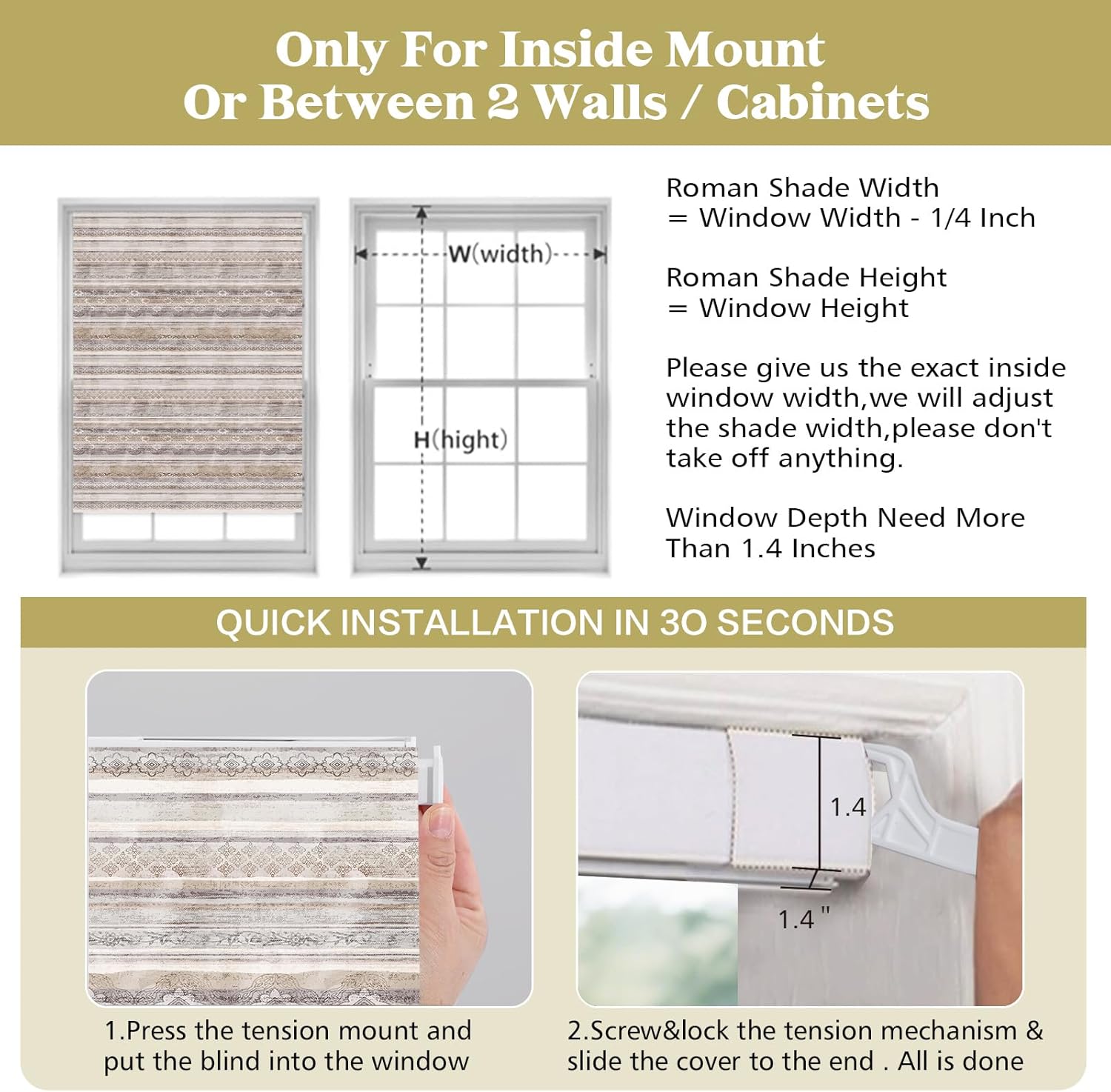No drill Cordless systems for inside mount, no need to drill holes on your window frame,Easy to install, good for any kind of wall like wood, marble, ceramic. If you don't know how to choose a size, check out the measurement guide in the 8th picture from the main image or contact me via Amazon mail.