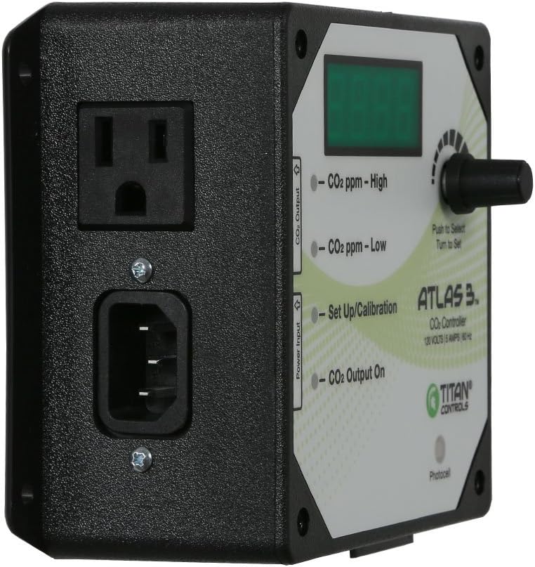 Controls and monitors CO2 from 0 to 2000 parts per million (PPM). CO2 enrichment or CO2 exhaust features. Easy to set-up and operate. Enclosure resists dust, rust and moisture. 5 Amps maximum/120 Volts/60 Hz.