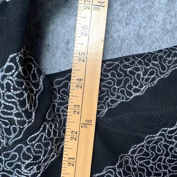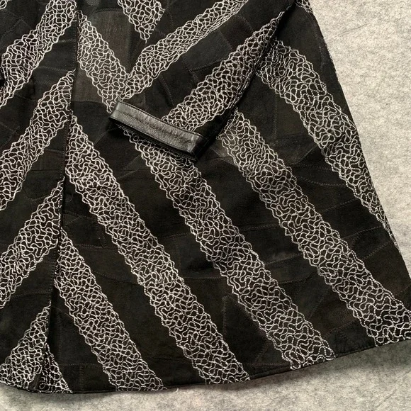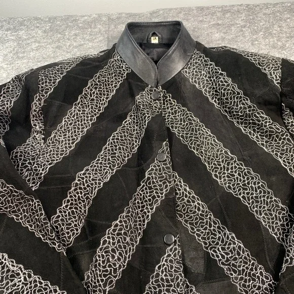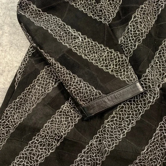 Leather Band‎ Collar Womens 1X Silver Embroidery Mid Length Coat