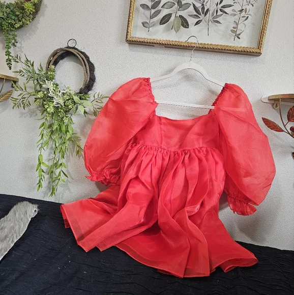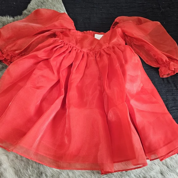 Super cute, SUPER comfortable! The well-known, TikTok and Instagram-famous puff dress - in sold-out Winter Red, a beautiful Christmas color that would be just as perfect as a Springtime minidress. New with tags! Bought for a Christmas party, but got here right after, so it's never been worn! Quick Info: - 100% poly- Unlined- Hidden center-back zipper closure- Puff sleeves with elastic trim- Three-tier puff skirt- Organza fabric with sheen finish Measurements: - Bust: 33-35"- Underbust: 27-29"- Waist: 25-27" Thanks for taking a look! :D