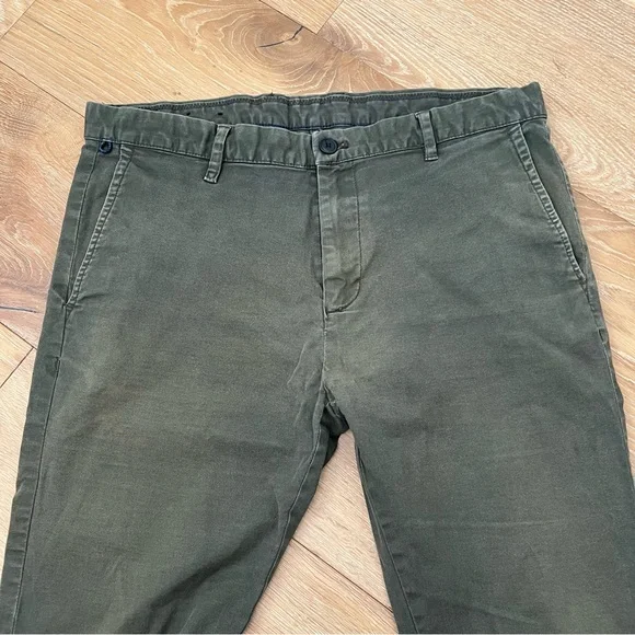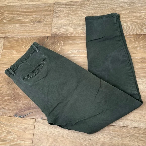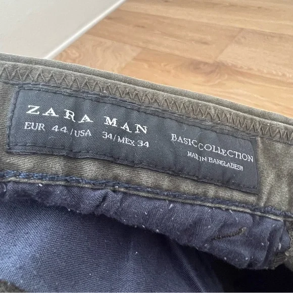 Style: Zara Chino Pant Brand: Zara ManColor: Black / Olive Green Size: 34 Fabric: Closure: button and fly Condition: well loved Details: Basic Collection