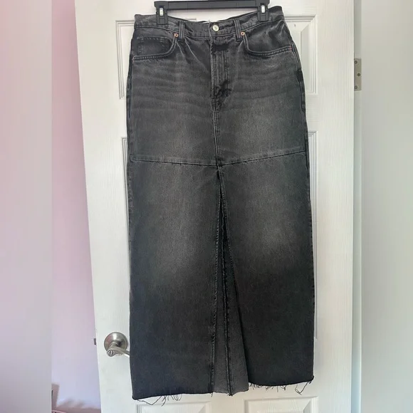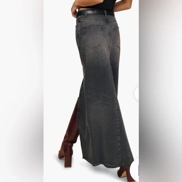 New without tag!The Reformation Jeans Tazz Denim Maxi Skirt in Liman Black/Gray is a chic and versatile piece that effortlessly channels 90's vibes.Crafted from high-quality denim, this size 28 skirt features a flattering full-length maxi silhouette with a slit down the middle. Its vintage-inspired design and faded black/gray wash make it perfect for creating both casual and elevated looks. Ideal for those who love retro fashion with a modern twist, this skirt is a timeless addition to any wardrobe.Unlined67% organic cotton, 22% Tencel® lyocell, 11% recycled cottonTencel lyocell is a sustainably produced fiber made with closed-loop processing