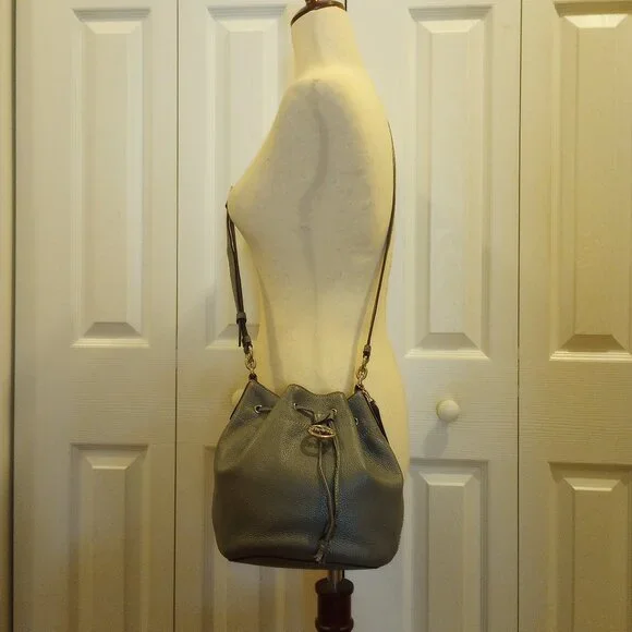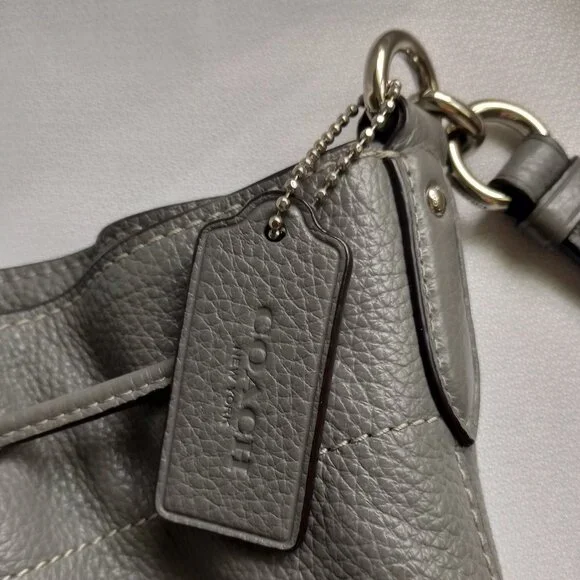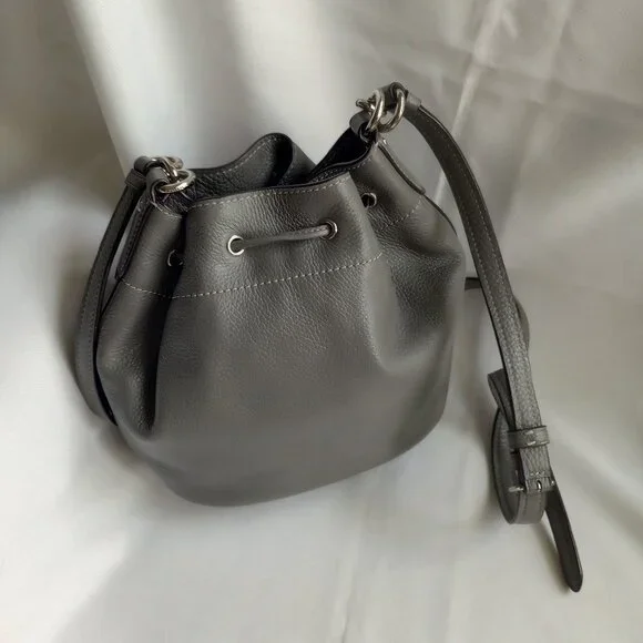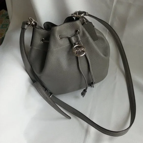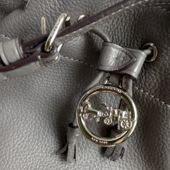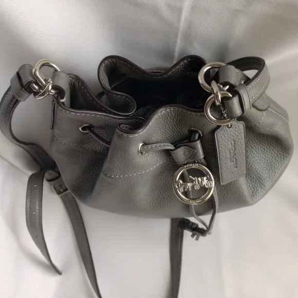 Received as a gift but never usedCoachELLE DRAWSTRING CROSSBODY (COACH F31412)HEATHER GREY/SILVERCOACH STYLE # F31412DetailsRefined pebble leatherInside zip pocketDrawstring closureAdjustable strap with 22 1/2" drop for shoulder or crossbody wear7 3/4" (L) x 7 3/4" (H) x 4 3/4" (W)Check out my other designer bags - I combine shipping