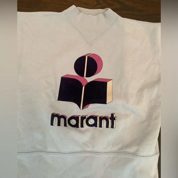 Isabel Marant women’s pale blue sweatshirt with Purple Logo. Size 36/small
