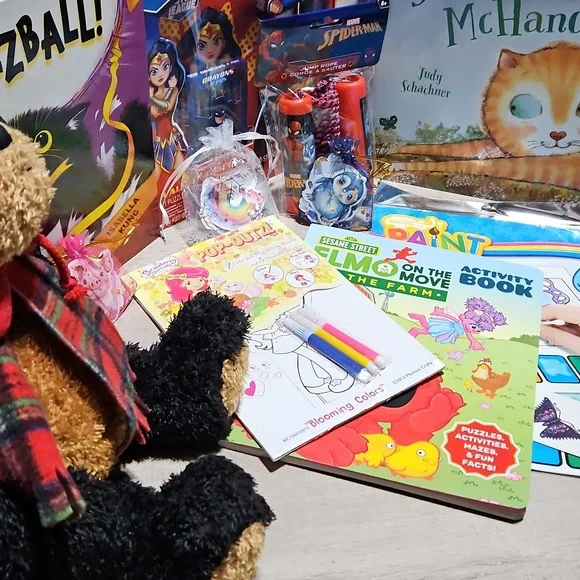 Discover endless fun with this Kids Mystery Box!Packed with toys,stuffed animals, books, etc! No clothes, just pure fun! Ages 5 and up! Includes NWT items, NWOT items! (see photos for sneak peek!) All items come individually wrapped. Fun box to open with your loved ones! Rainy day activities! At least 10 items! *a few surprises will be added too! inv#greentote