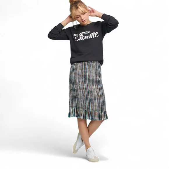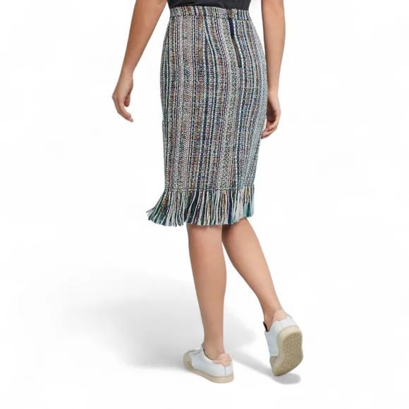 Anthropologie x Maeve 70's Tweed Split Multicolor Pencil Skirt Women's sz 4Pre-owned condition. No holes or stains. Does not look brand new but has normal wear. Lined.Please see photos.Take advantage of this versatile tweed skirt by pairing it with a feminine lace top and tights for work, and with sneakers and a graphic sweatshirt for weekend brunch.Rayon, cotton, acrylicFringed hemBack zipHand washImportedApproximate Measurements:waist: 14"length: 26" (including fringe)