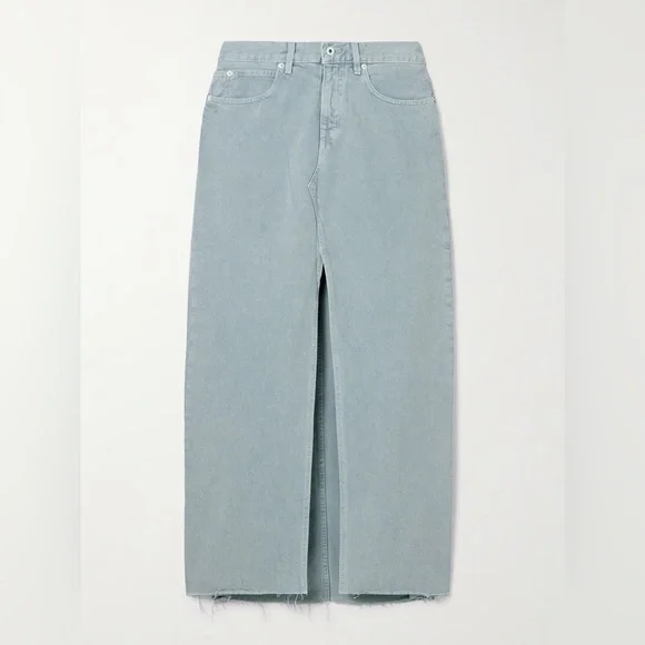 Bought on Net A Porter. Elevate your style with this chic light blue denim maxi skirt. Perfect for casual outings or a day at the office. Pair it with your favorite top for a complete look.The Denim Maxi Skirt from SLVRLAKE is crafted of denim and features a classic five-pocket style, a center slit, and a raw hem.• Five-pocket style• Center slit• Raw hem• Zip fly, button closure• 100% cotton• Machine wash• Made in USASIZE & FIT• This style is constructed in a woven, no-stretch fabric for a tailored fitFit: True to size.23=0-2, 24=2, 25=2-4, 26=4, 27=4-6, 28=6, 29=6-8,30=8, 31=8-10, 32=10.