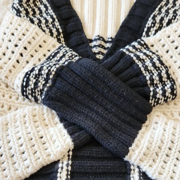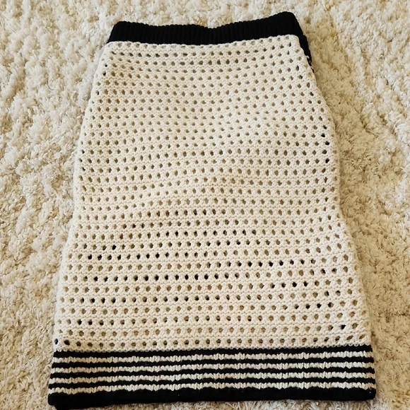 Stay cozy and stylish with this elegant black and cream sweater looking skirt. Perfect for any occasion.