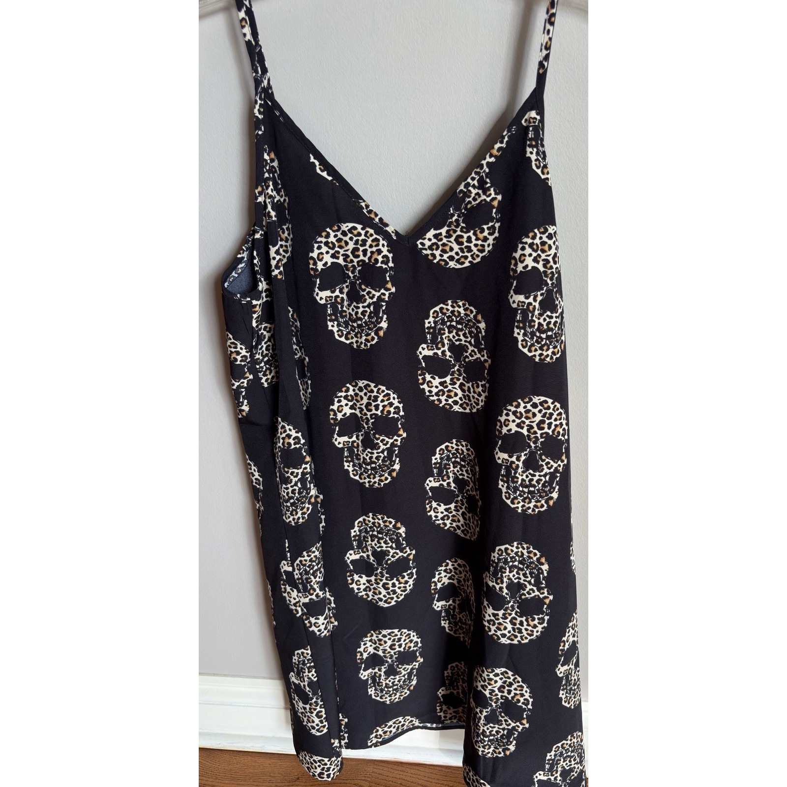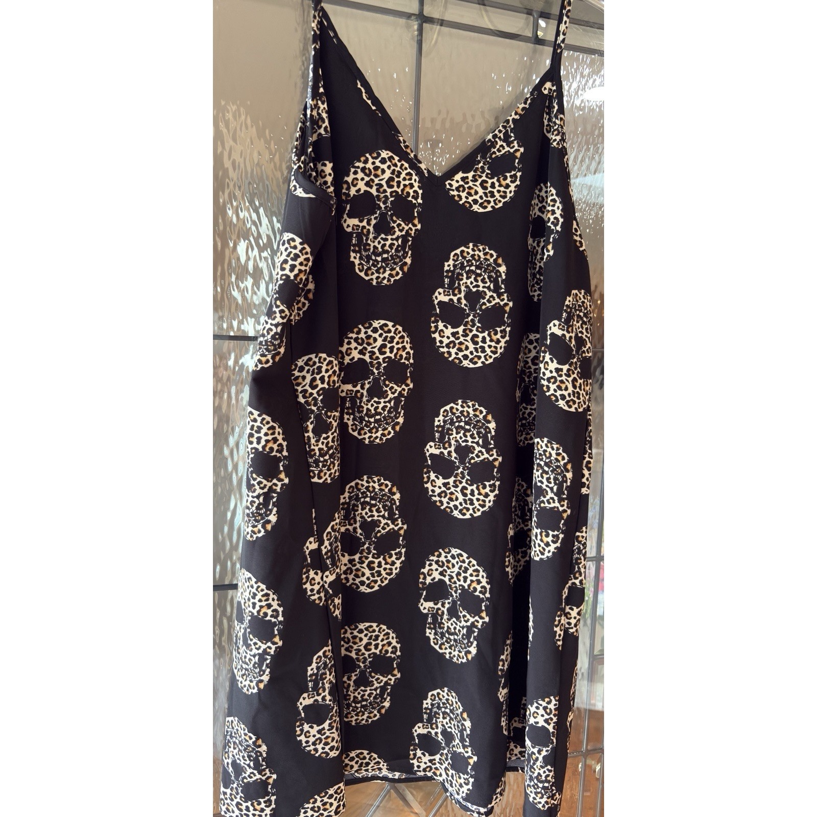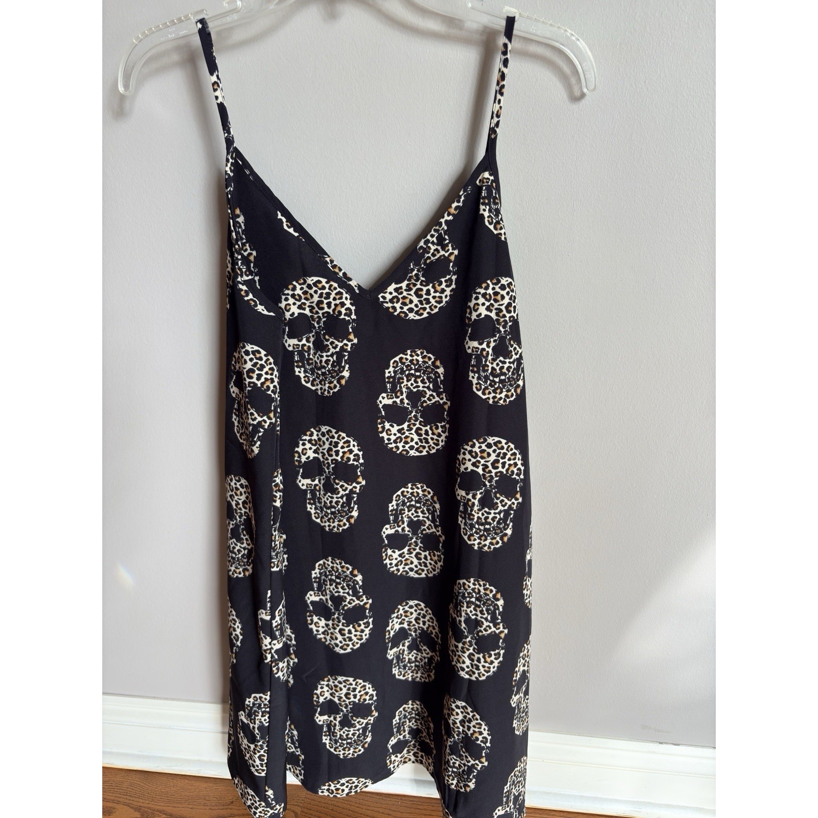 Here's a complete, optimized eBay listing for your Emery Rose skull slip dress featuring gothic and Halloween Edgy bold Emery Rose slip dress Size large. Featuring a striking black background with an all-over skeleton skull motif in leopard print, this piece is perfect for Halloween, concerts, or everyday punk/goth flair. The soft rayon-poly blend makes it breathable and smooth against the skin. Finished with a V-neckline and adjustable straps for a flattering fit.