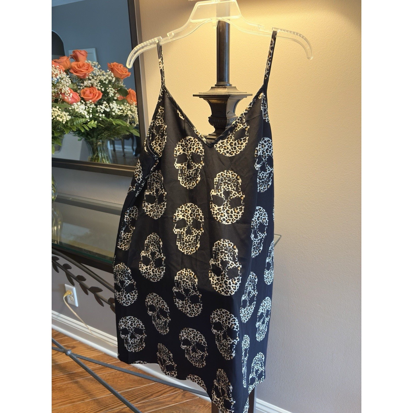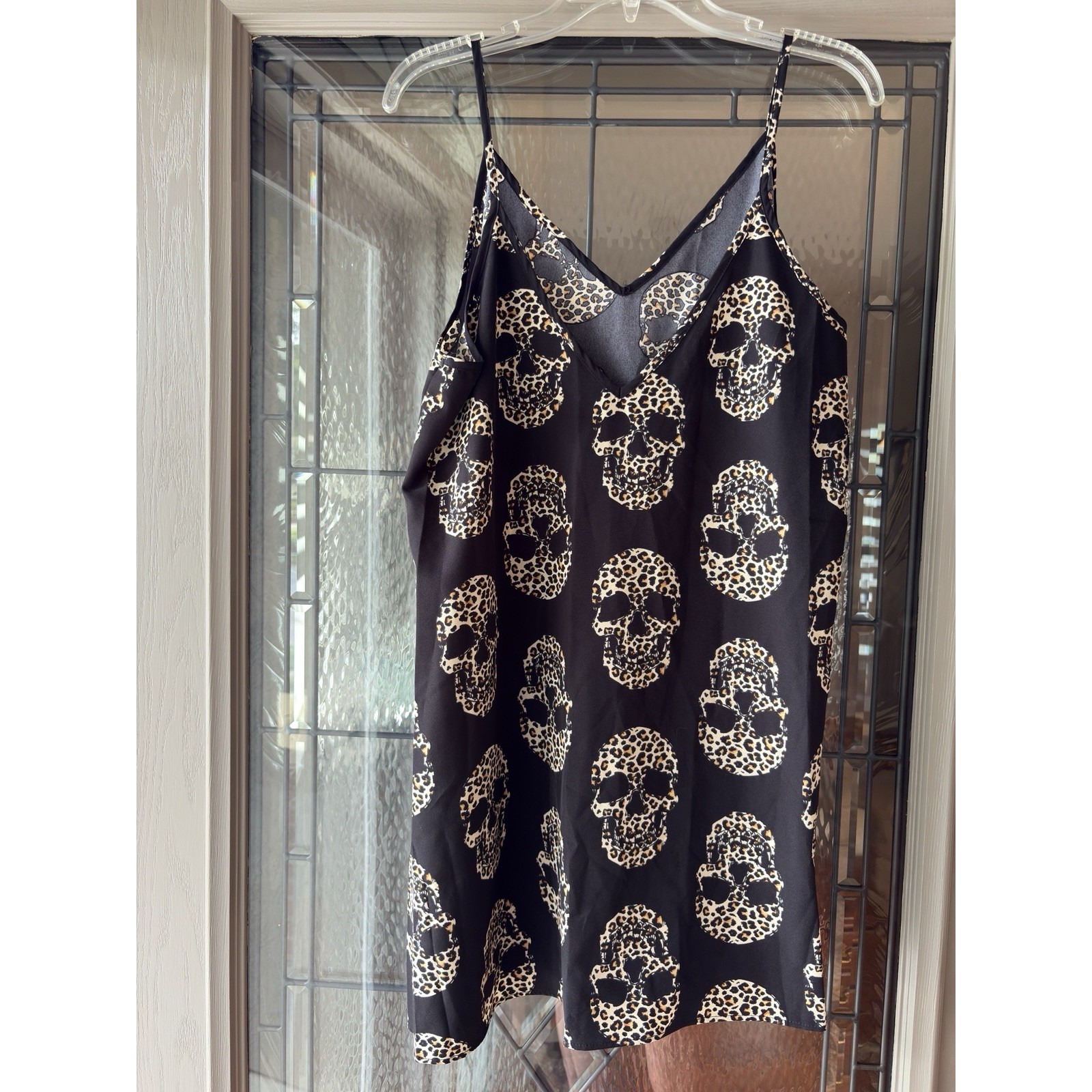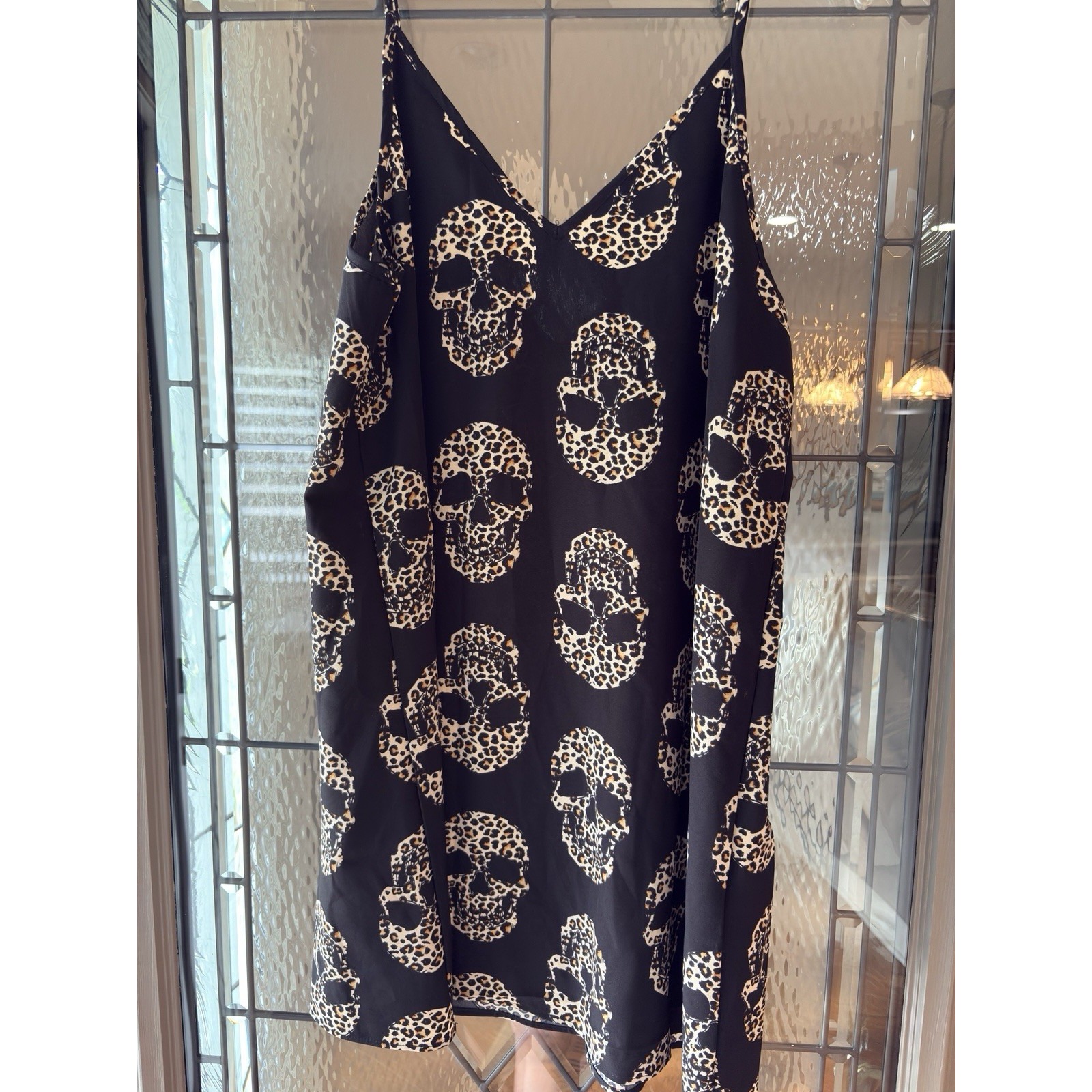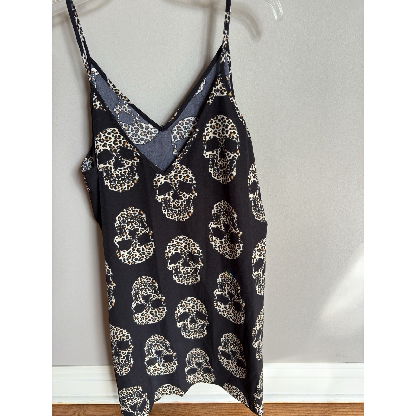 Here's a complete, optimized eBay listing for your Emery Rose skull slip dress featuring gothic and Halloween Edgy bold Emery Rose slip dress Size large. Featuring a striking black background with an all-over skeleton skull motif in leopard print, this piece is perfect for Halloween, concerts, or everyday punk/goth flair. The soft rayon-poly blend makes it breathable and smooth against the skin. Finished with a V-neckline and adjustable straps for a flattering fit.