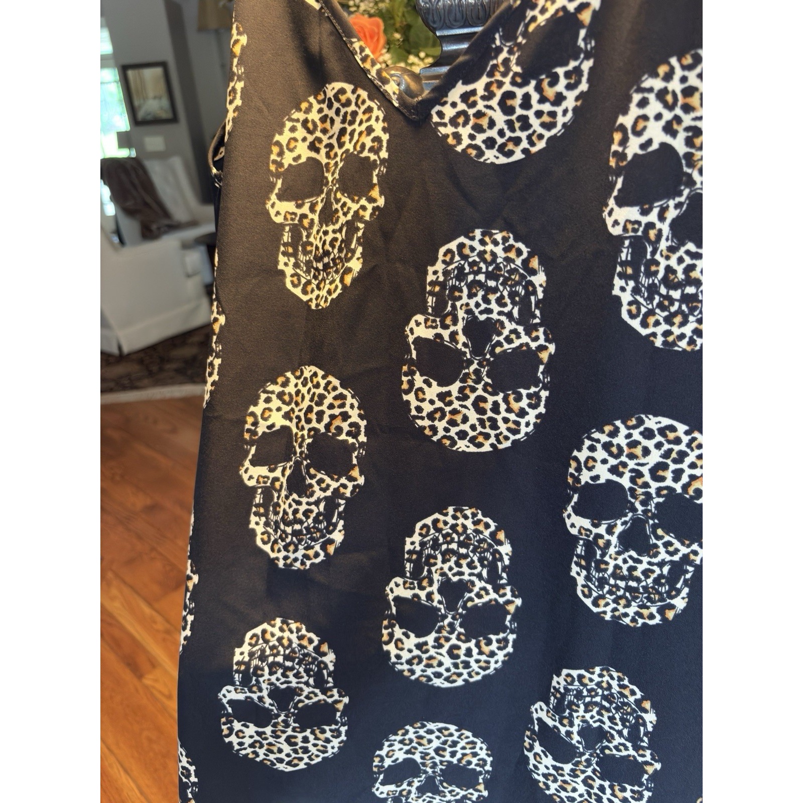 * Design: Leopard print skulls on black