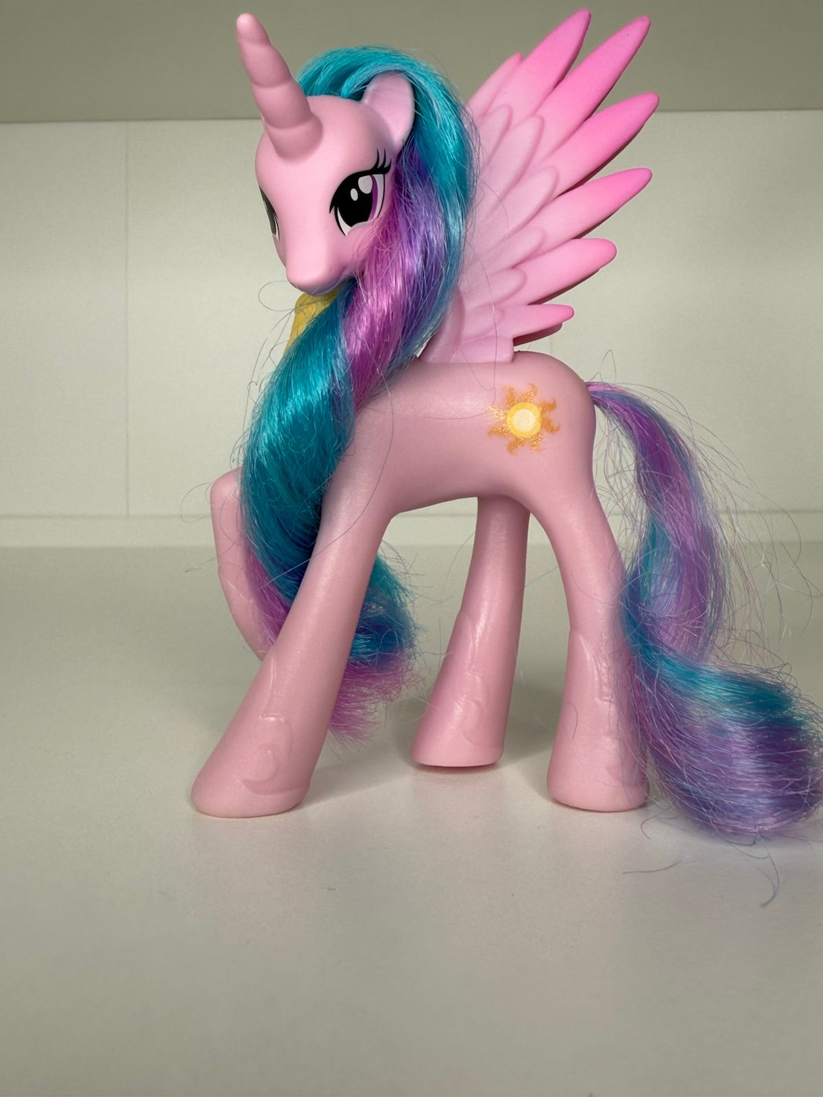 The Celestia has a pink stain on her neck, the Twilight has a chewed horn!