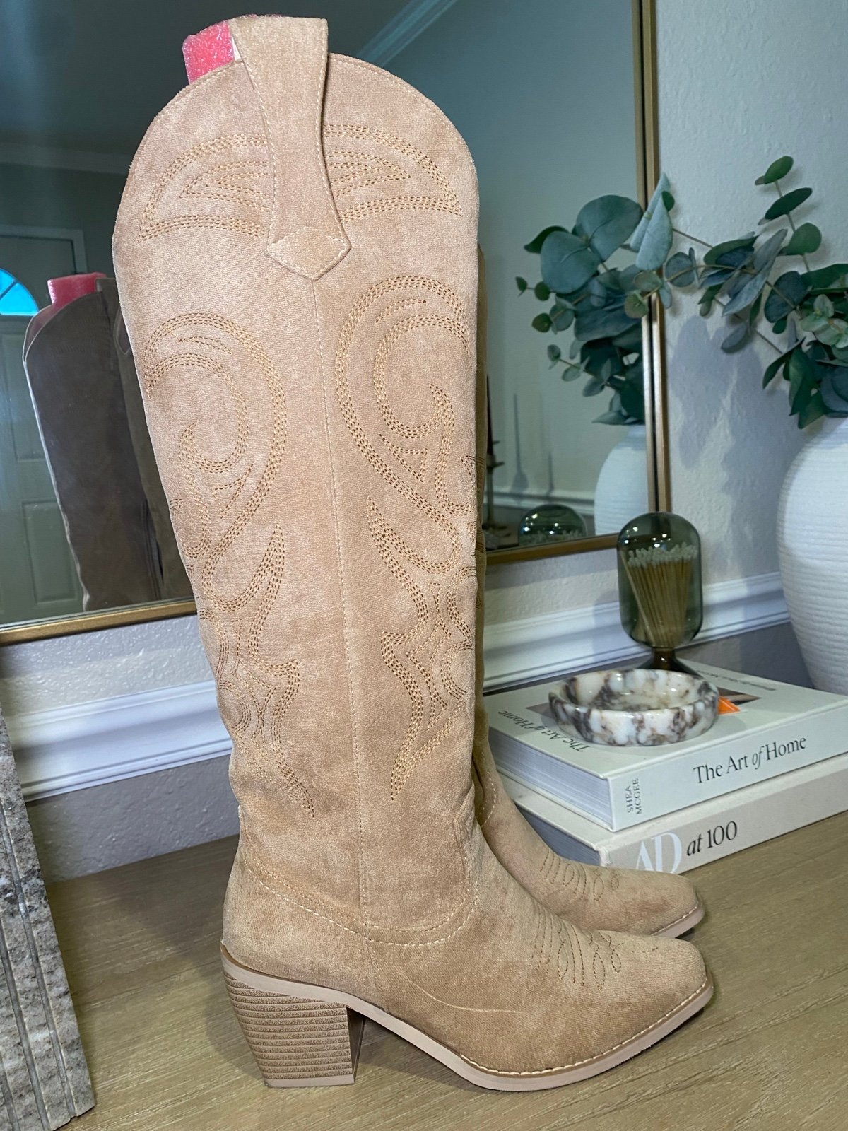 Wetkiss Knee High Tan Beige Western Cowboy Boots