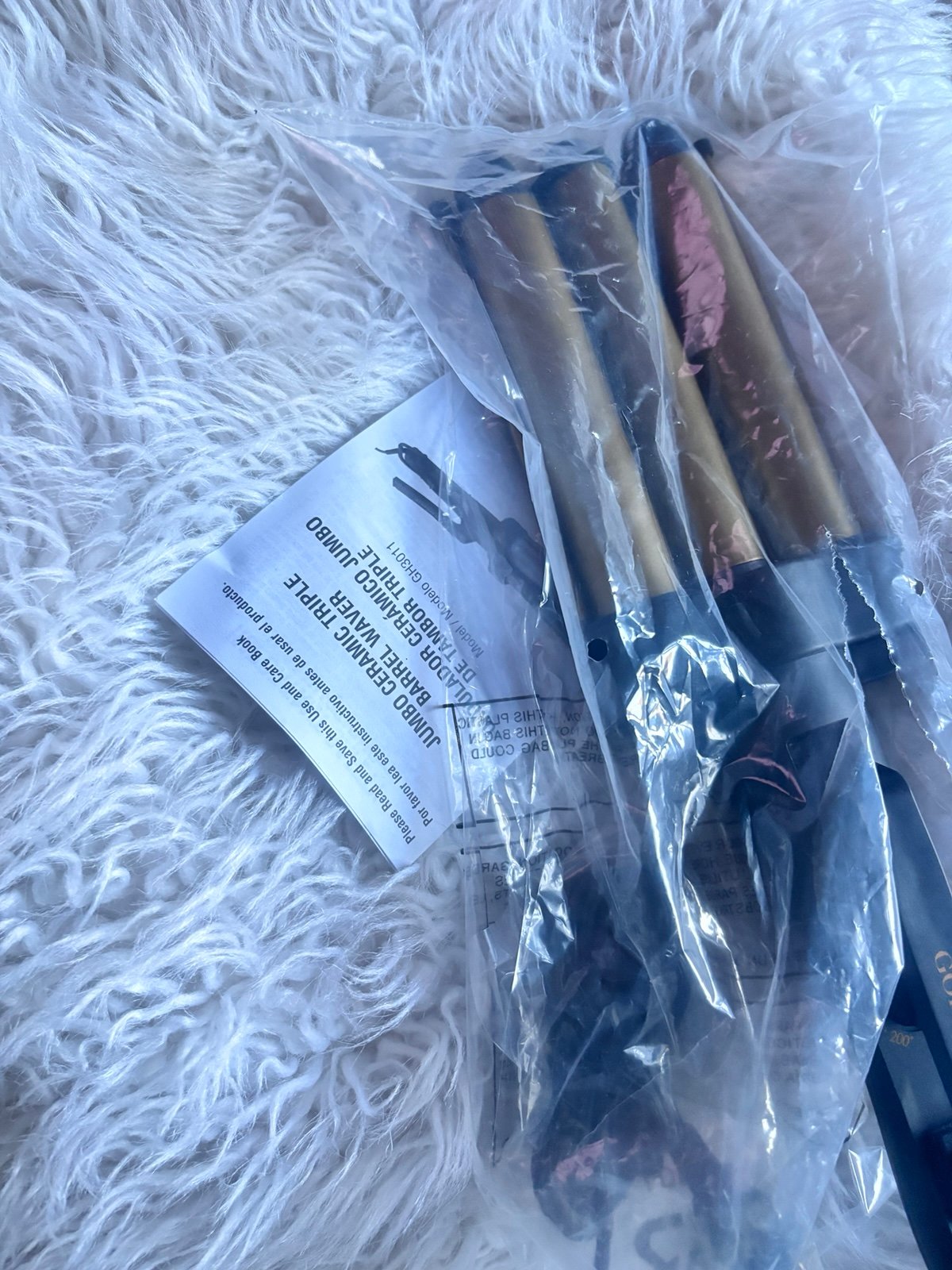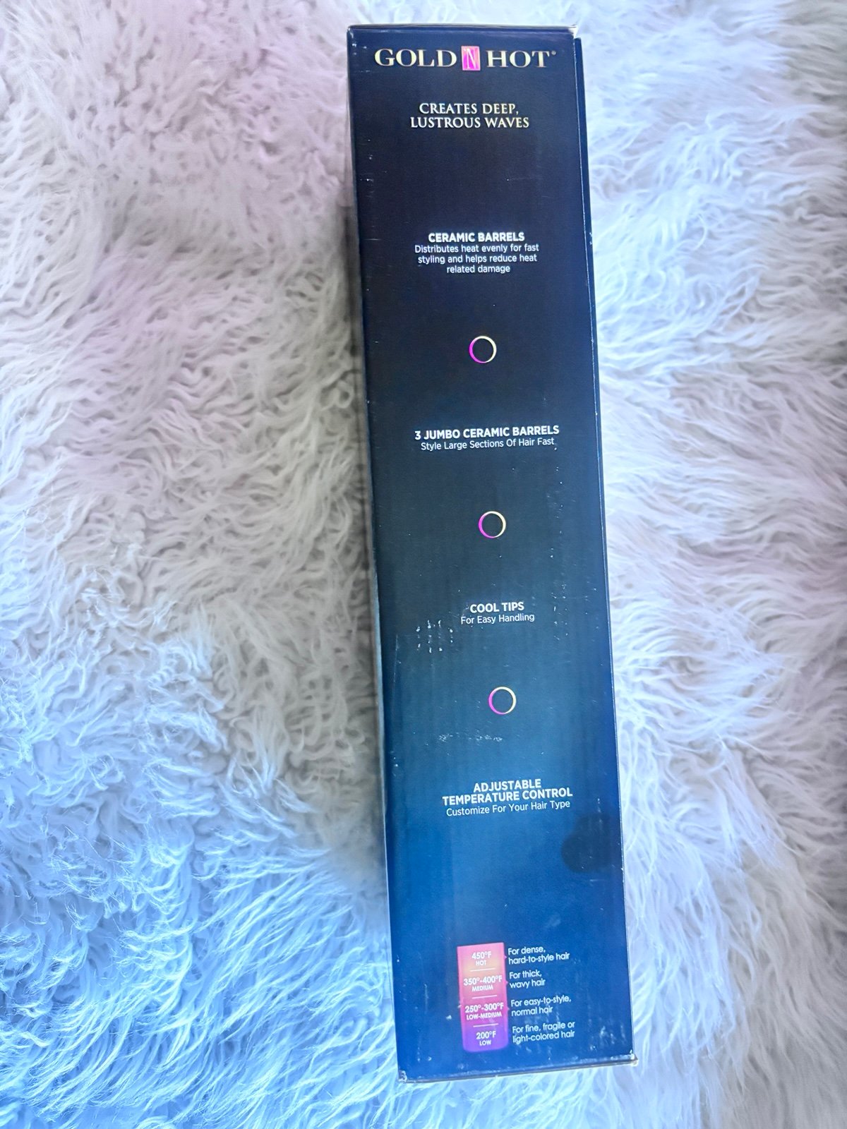 Gold 'N Hot professional jumbo ceramic triple barrel waver. Features gold and black design. Brand new. Open box. Opened just to test the power and heat. Goes to 450and is very hot. Works good. Never used. Only tested.