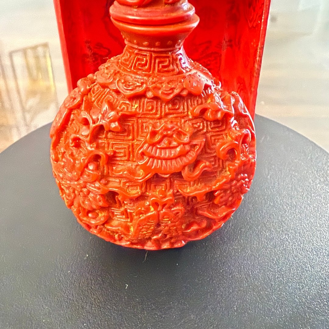 This intricately carved red coral jar features a dragon motif, symbolizing power and leadership. Perfect for collectors of ancient treasures or as a unique decorative piece. Includes two pieces, each showcasing exquisite craftsmanship.