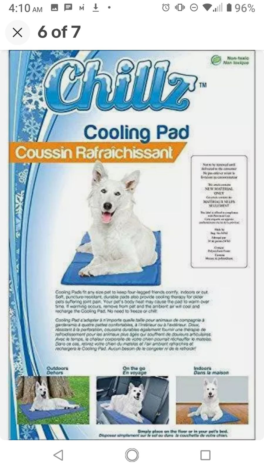 The Chillz Dog Cooling Mat is a game-changing self-cooling pet cushion that works without refrigeration, water, or electricity. The Chillz Pad is soft yet puncture-resistant which makes it the perfect treatment for dogs suffering from heat, pain, swelling, discomfort and stress. This innovative mat is perfect for those hot summer days to keep your furry friend’s temperature low so they do not overheat. It automatically recharges and no electricity or refrigeration is required. This allows your pet to keep cool when you’re out of the house or doing other things. The Chillz pad is made from a non-toxic lightweight material that is portable, and fits in cars, beds, and crates. It folds quickly so you can bring it with you no matter where you go. Available in 3 sizes, it promises to keep your four-legged friends cool and comfy, indoors, outdoors or on the go. Need help with sizing? The Medium pad measures 19.5 x 15.7 inches and is recommended for use with dogs weighing between