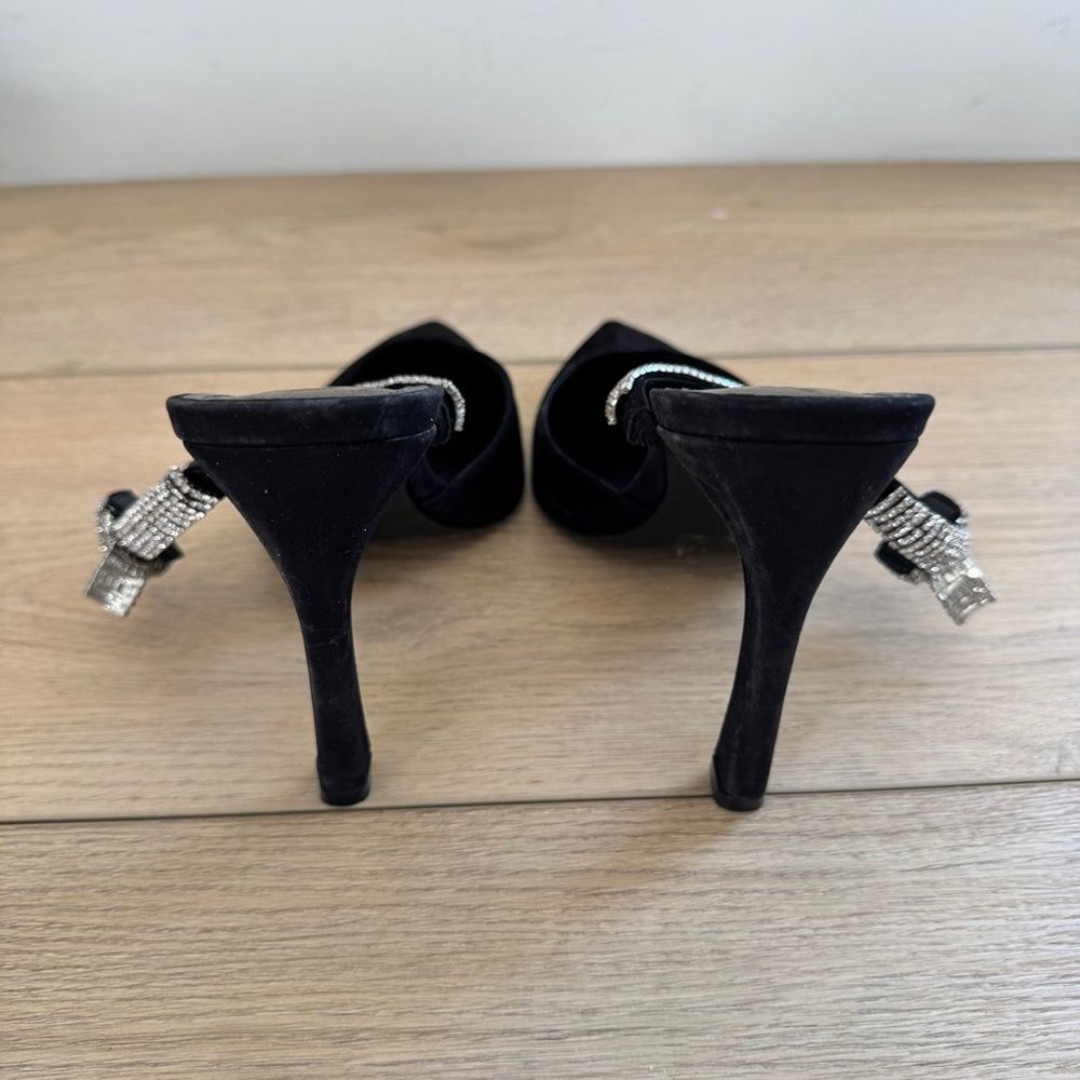 Get ready to elevate your style with these bold mules! Featuring a sharp, pointed toe and a sleek, structured design, these heels are all about making a statement. The standout detail? The dazzling rhinestone-encrusted strap wrap across the upper, adding the right shimmer and edge, perfect for taking any outfit from ordinary to extraordinary!