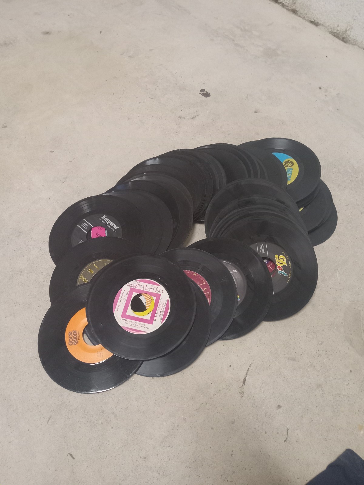 Are a lot with company sleeves and pictures sleeves there are a few pictures please without the 45s but there is a large variety of different kind of music and a lot of different labels not just generic Columbia MGM there are some of them in there but there's a lot of other stuff in