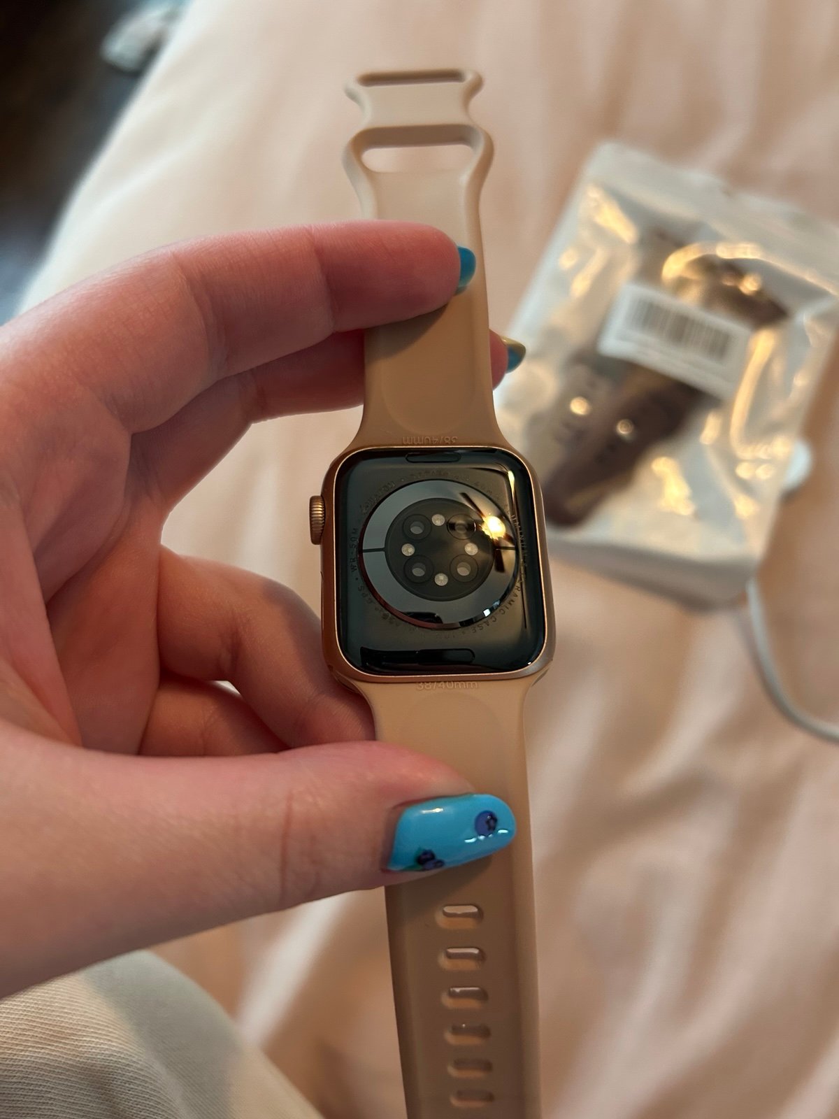 Has been used for about 2 years but is in great condition! Comes with 2 brand new bands and one that was only used for about a week. Will come with original charger. There are a few scratches as shown in pictures but works great and has no problems. It is updated to WatchOS 11.2 and comes ready to set up.