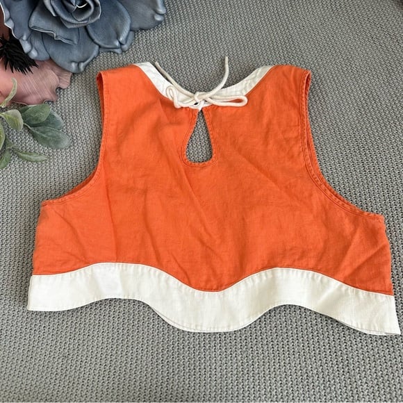 STAUD Livia Scallop Crop Top Orange Linen Size XL