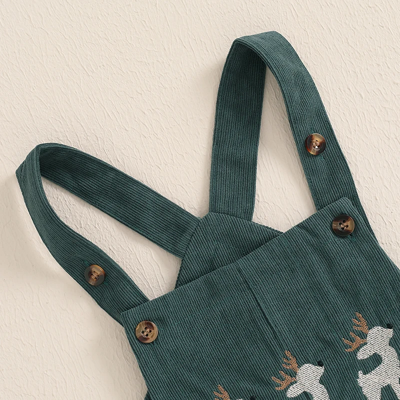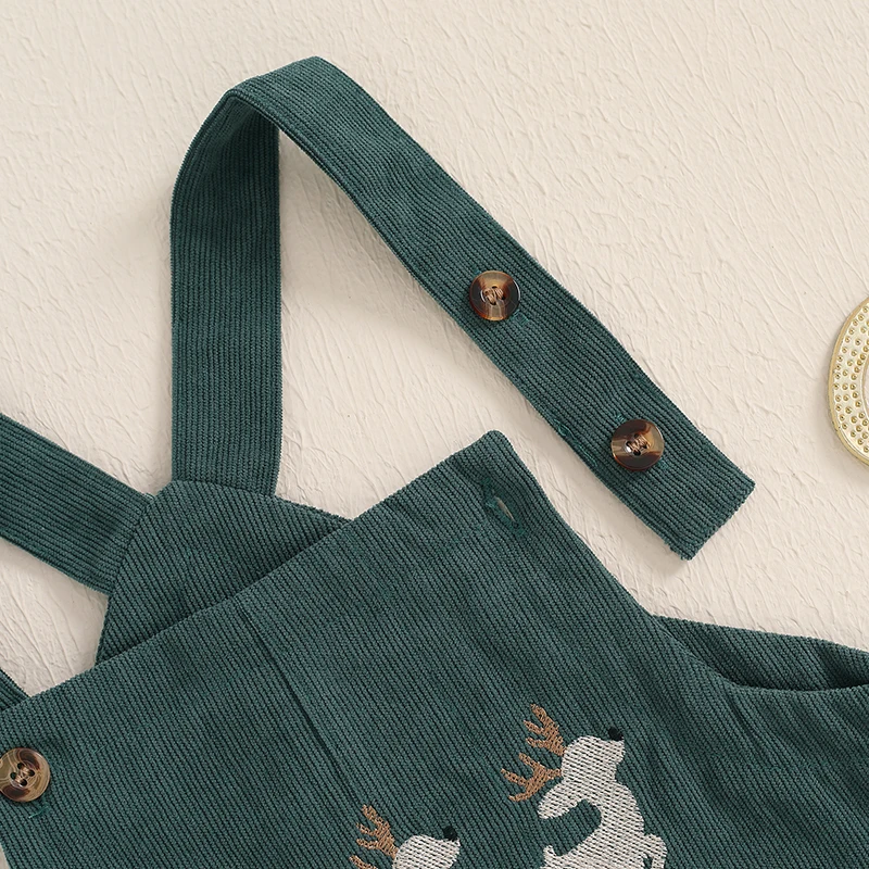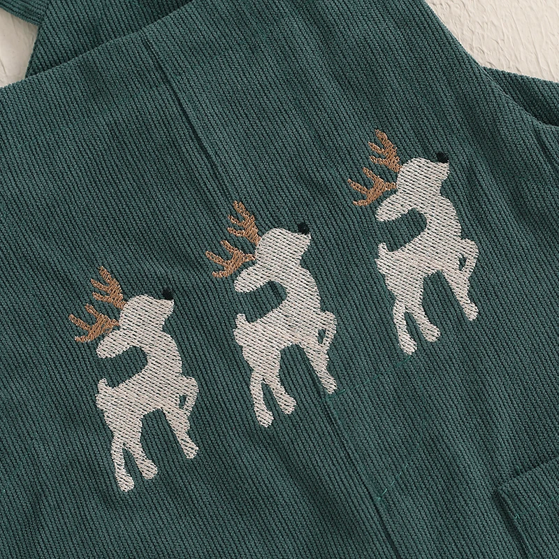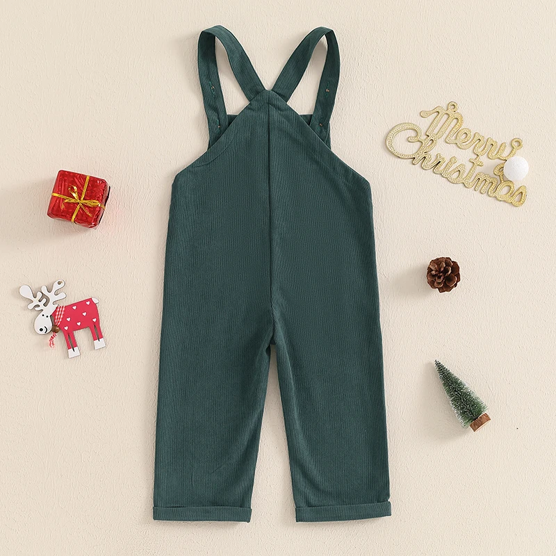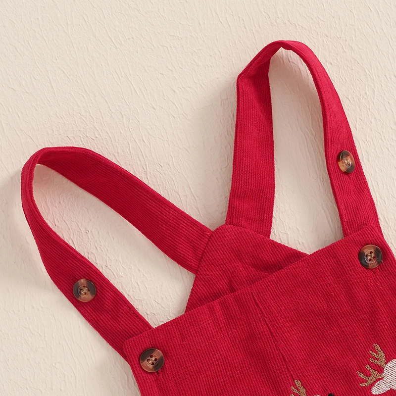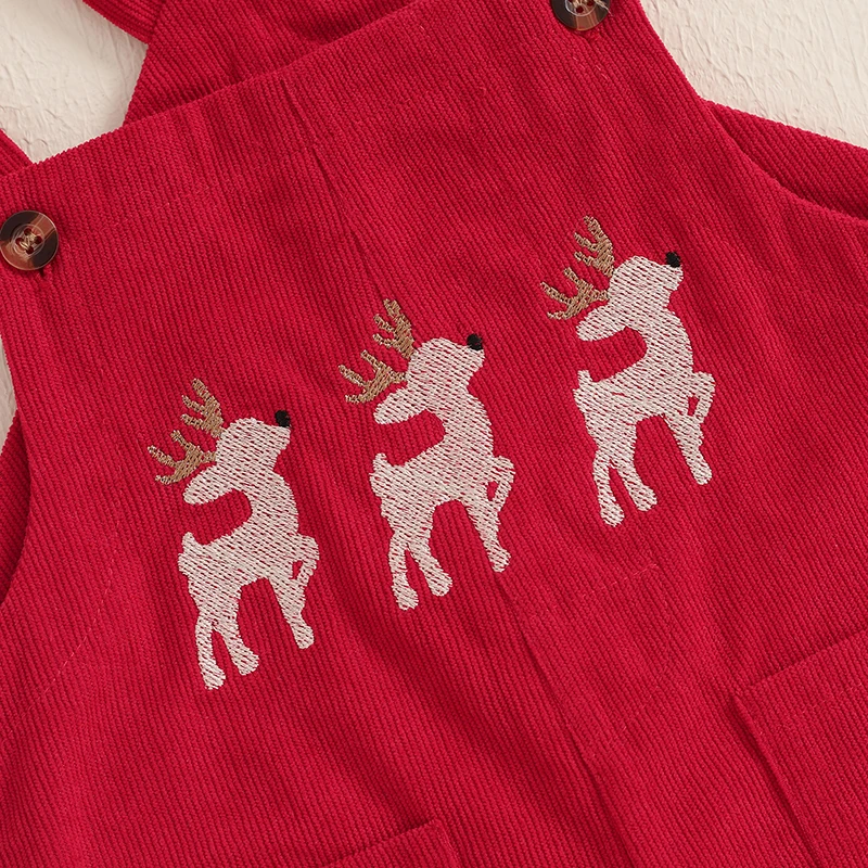 Christmas Toddler Girls Boys Overalls Reindeer Embroidered Sleeveless Straps Pockets Romper Jumpsuit