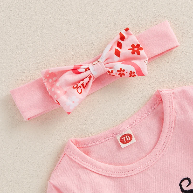 Baby Girls Christmas Outfits Long Sleeve Romper with Suspender Pants Headband Set Newborn Clothes