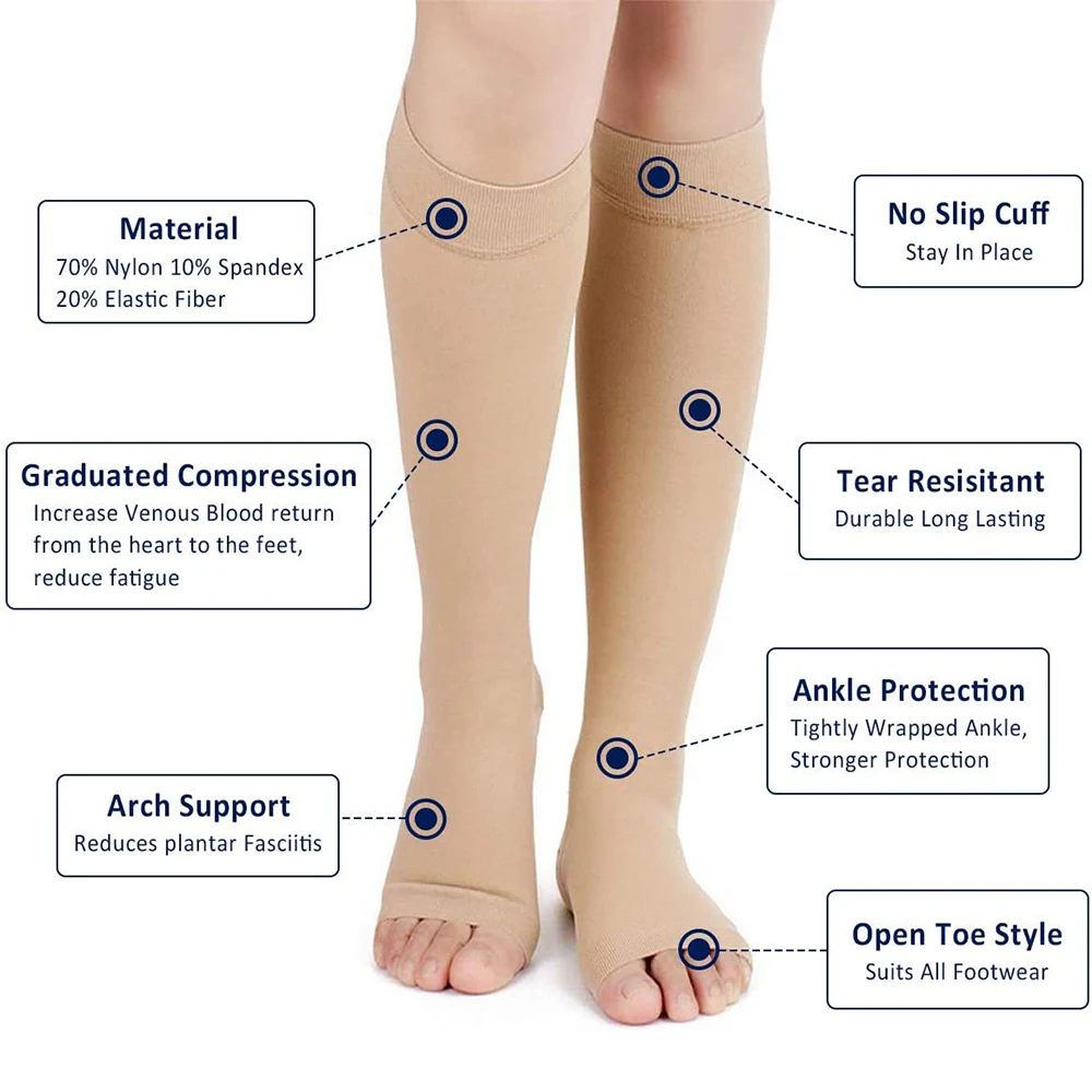 5. FIT FOR YOUR NEED - The 20-30mmHg professional graduated compression socks are suitable for all compression needs. The progressive pressure technology enhances elasticity, so there will be a tight fit when first worn, it's normal. If conditions permit, we strongly recommended purchasing 2 pairs for the same product to replace them, as this will double its life for each pair.