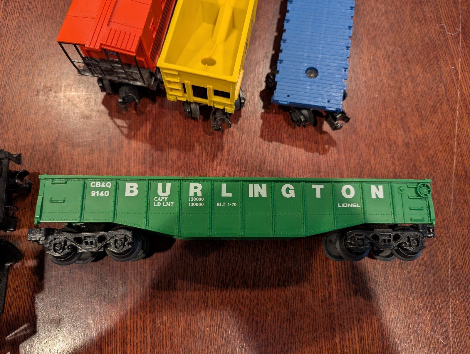This set is missing the bridge and other plastic pieces that were originally included. All cars and train itself look to be in good condition with all wheels rolling and turning as they should.