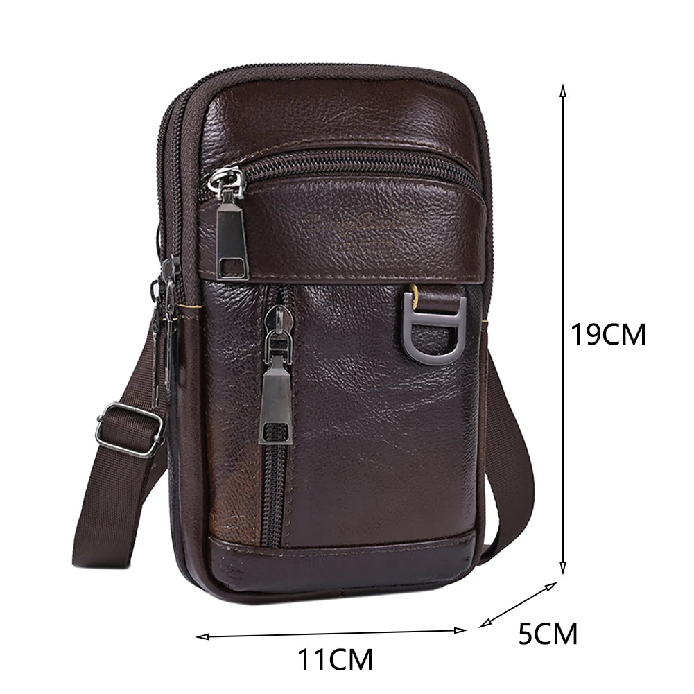 Vintage Men Cowhide Leather Shoulder Crossbody Bag Waist Fanny Pack Male Belt Bum Bag Travel Casual Messenger Handbags Phone Pouch Purse
