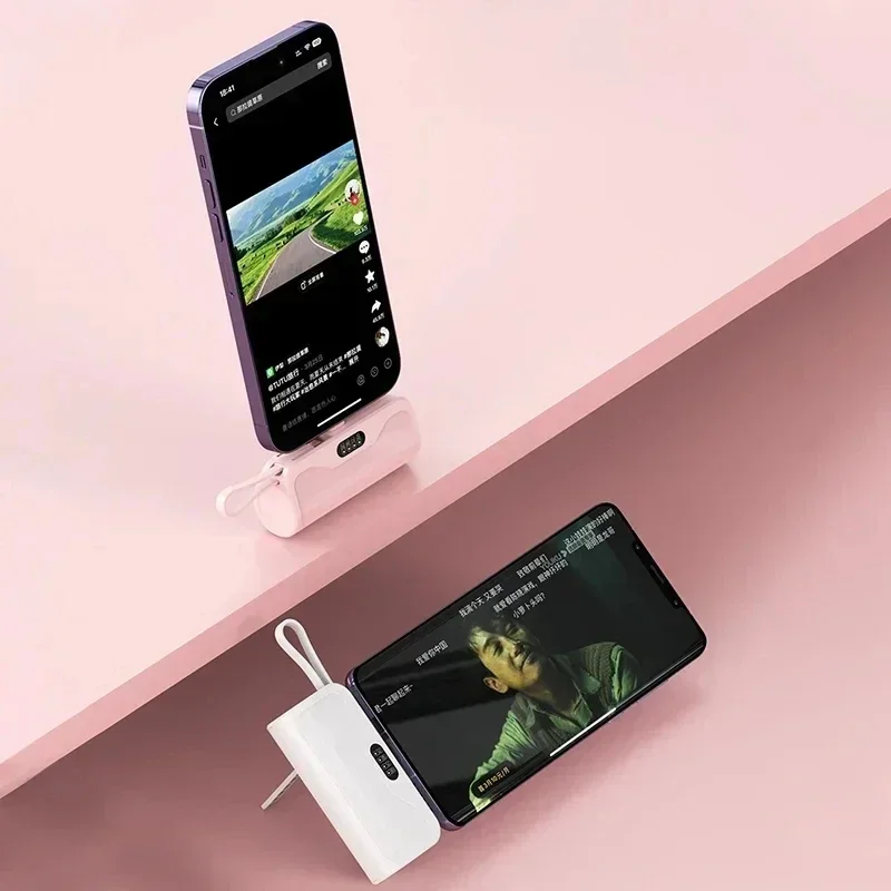 Mini Capsule Power Bank 10000mAh 2 IN 1 Built in Type-C Cable Large Capacity Fast Charging External Battery for IPhone Xiaomi