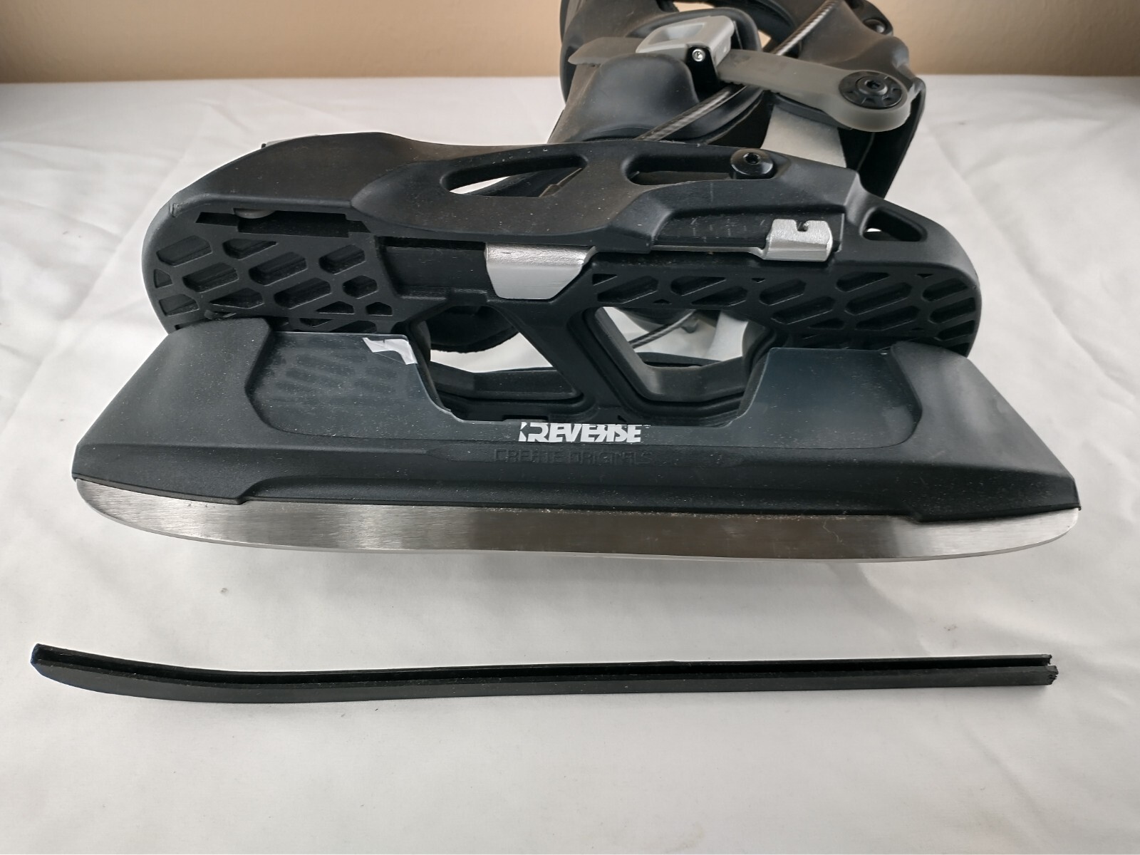 These Reverse Sports RX1 bindings are interchangeable with inline skates, quad skate and ice skate chassis. This listing is for the Ice skate chassis and the Medium size bindings. You open the binding up, put your foot in with your shoes one, and close it. Very similar to a ski boot except you keep your shoes on.